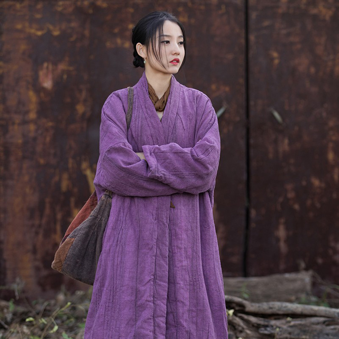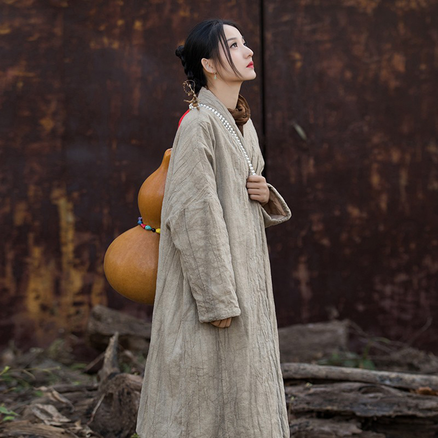 📚 新中式棉服女冬苎麻做旧加厚夹棉外套禅意流浪风棉袄复古长款棉衣