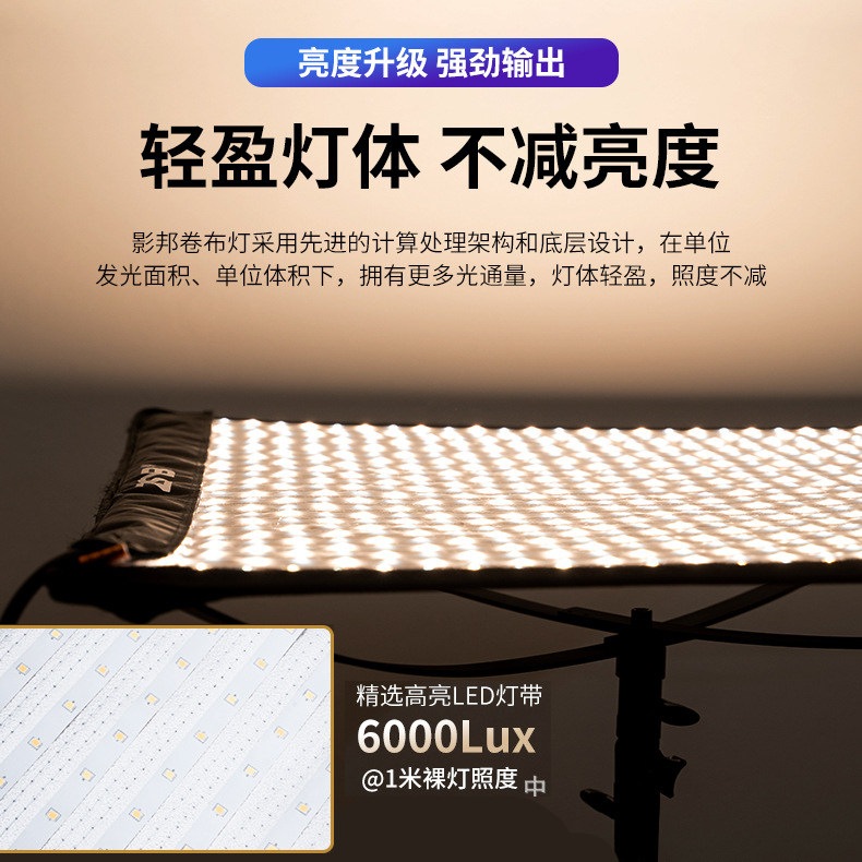 📚 影邦200瓦卷布灯主播专用直播间顶灯LED摄影补光灯人像格栅轮廓打光灯新闻采访视频影视灯光设备