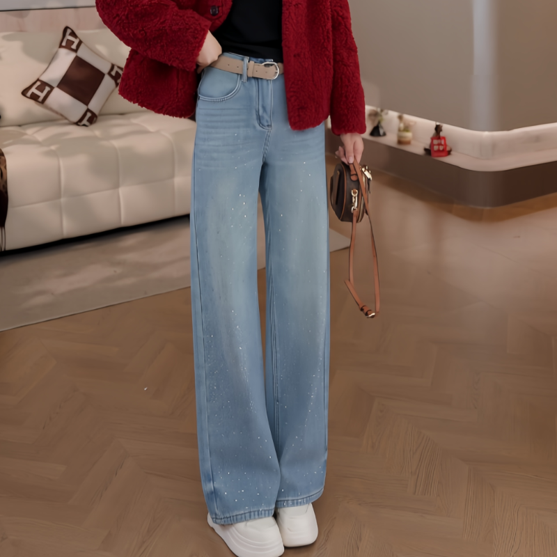 📚 豆豆DD【满天星爆闪】冬季加绒加厚亮片牛仔裤直筒裤-9235225DK