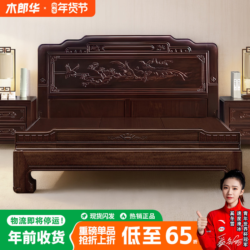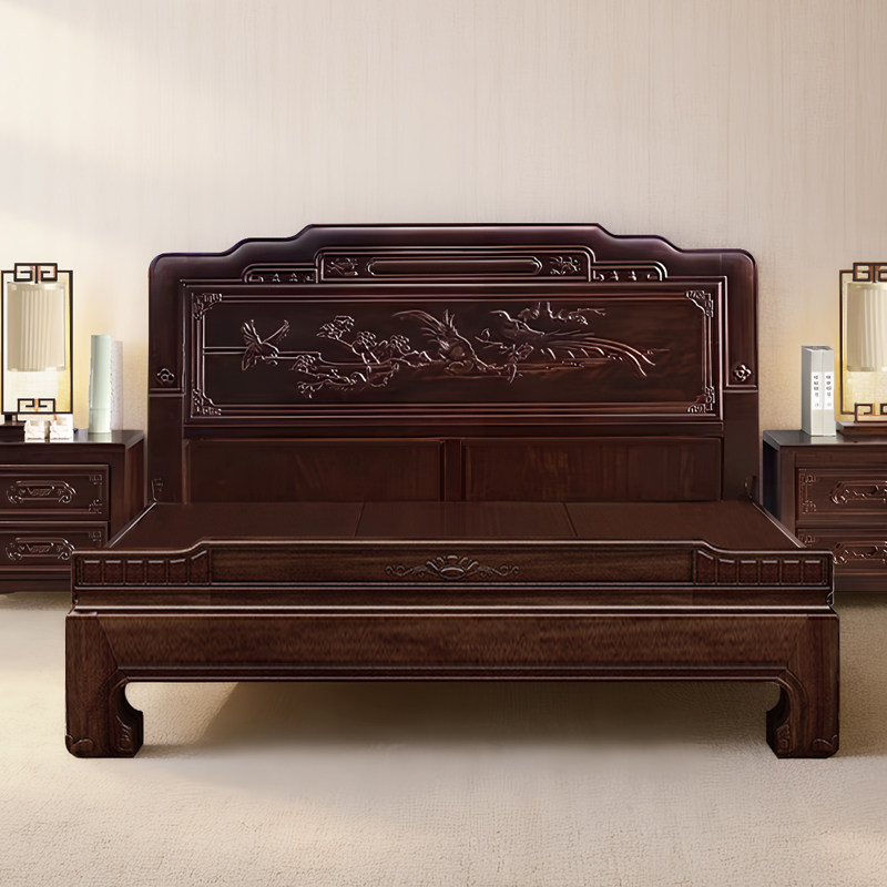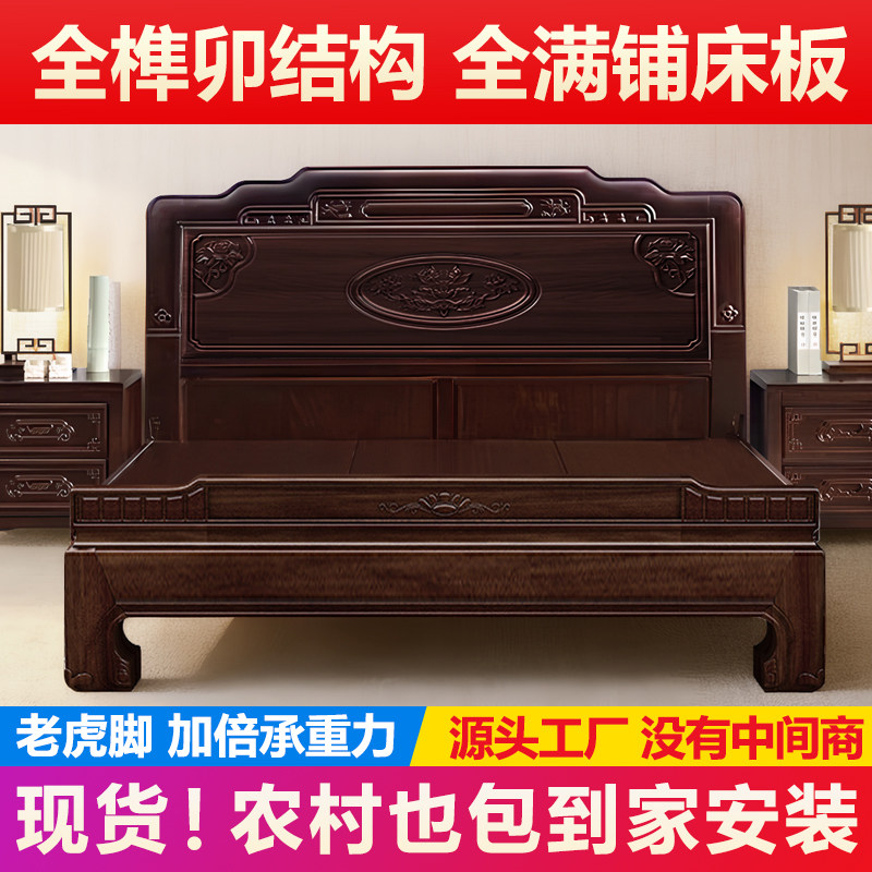 📚 加厚老虎脚金花梨木全实木床榫卯结构农村乡下老人双人床自建房床