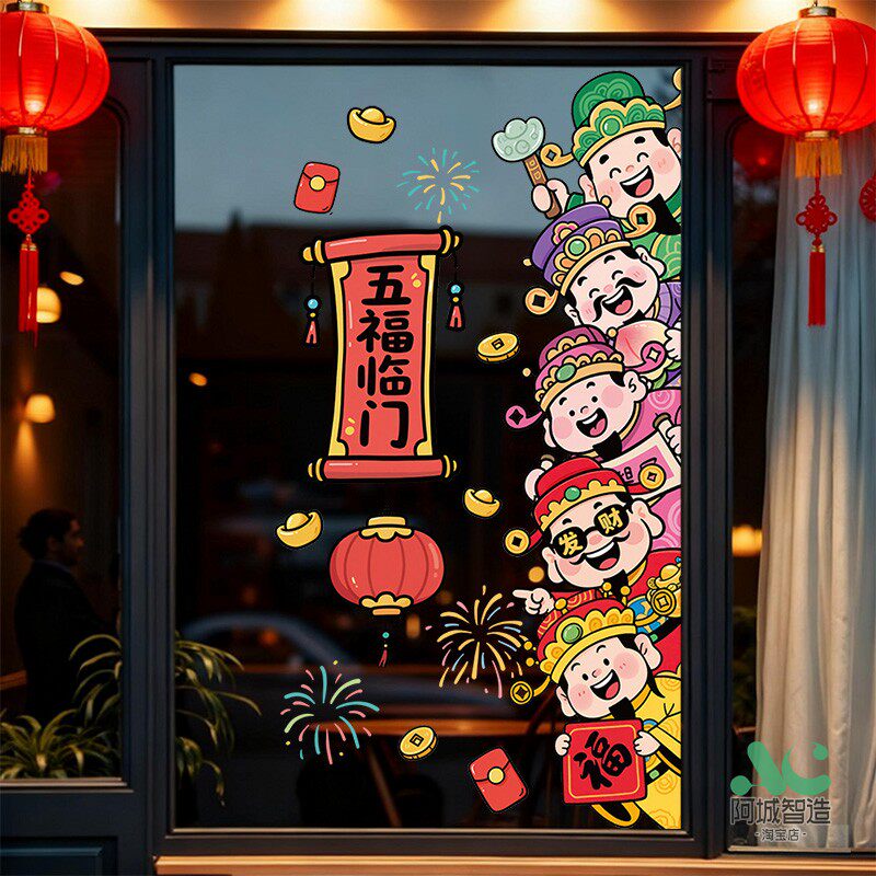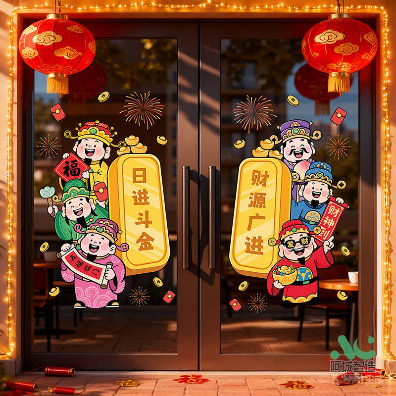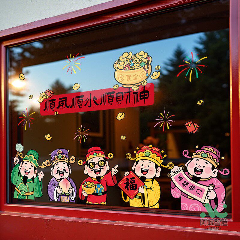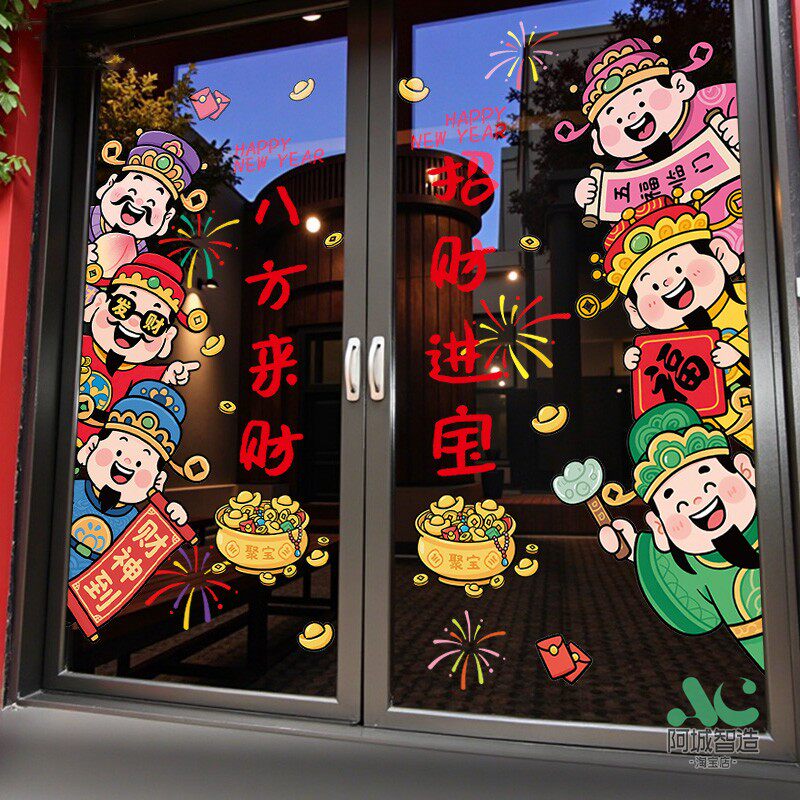 📚 新年财神爷窗贴2026元旦马年静电贴画玻璃门贴纸过年装饰窗花布置