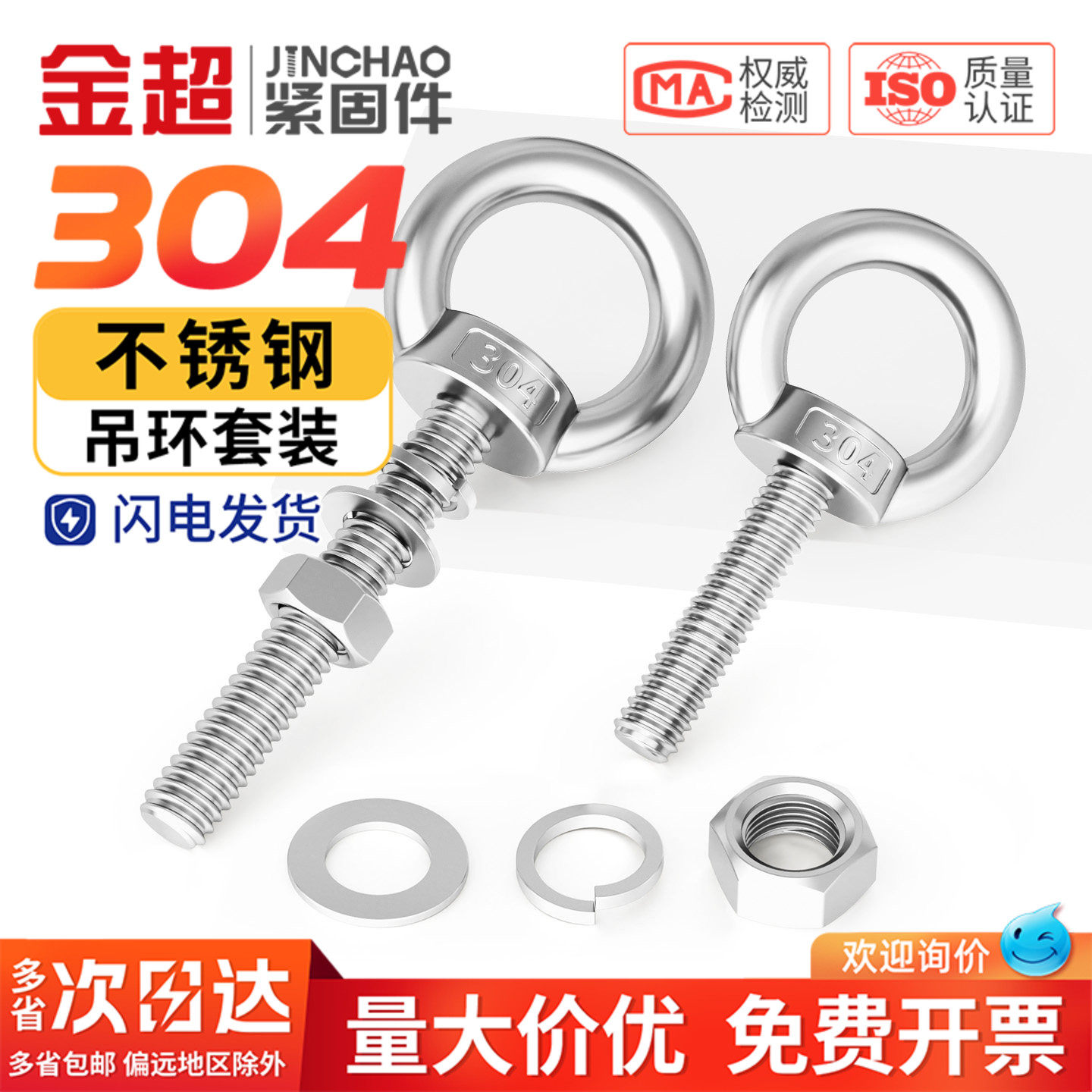 📚 金超吊环螺丝螺母套装304不锈钢吊环螺栓带环穿墙杆M6M8M10M12M16
