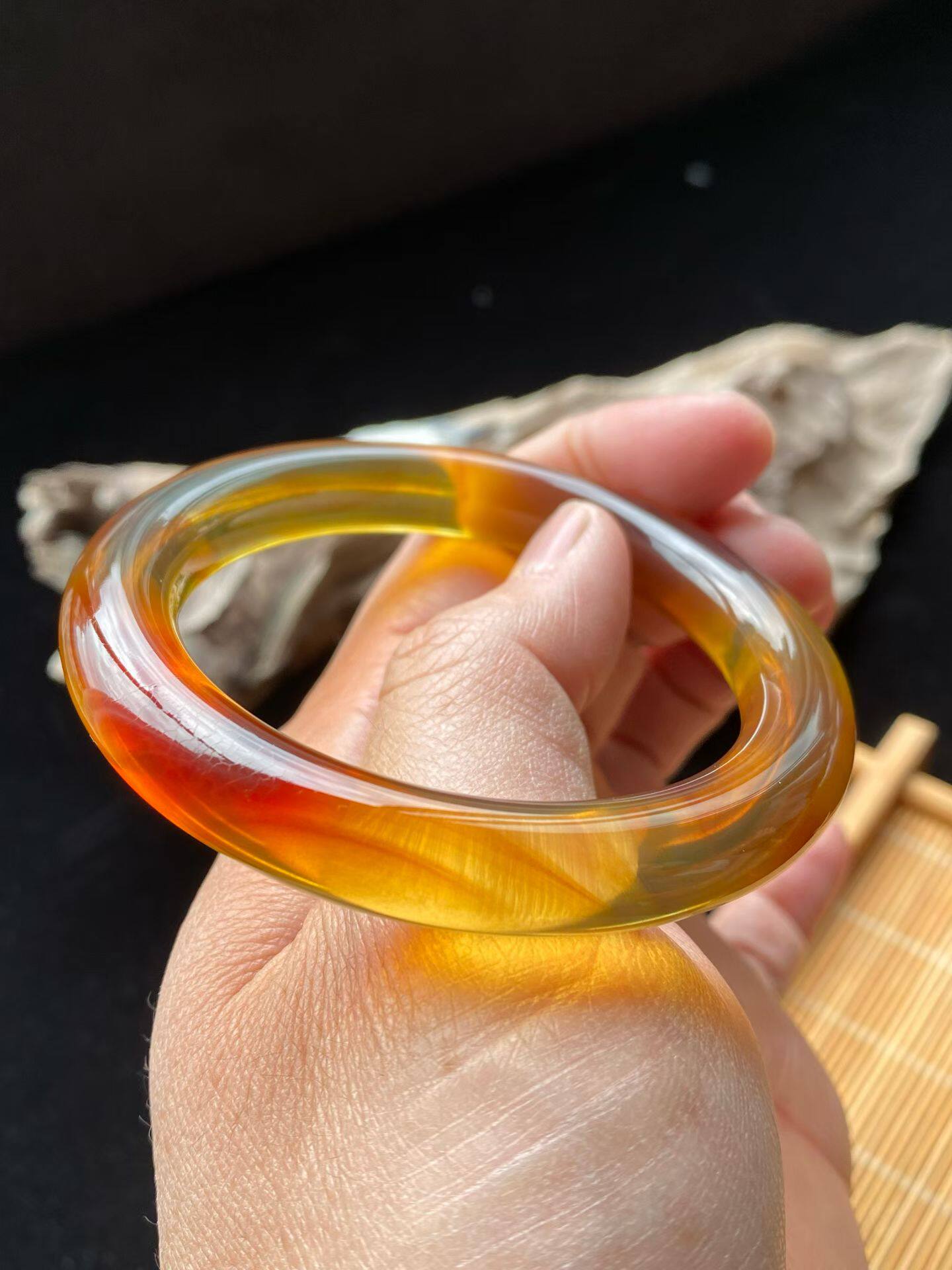 📚 缅甸琥珀鹤顶红血珀圆条手镯 圈口58 59