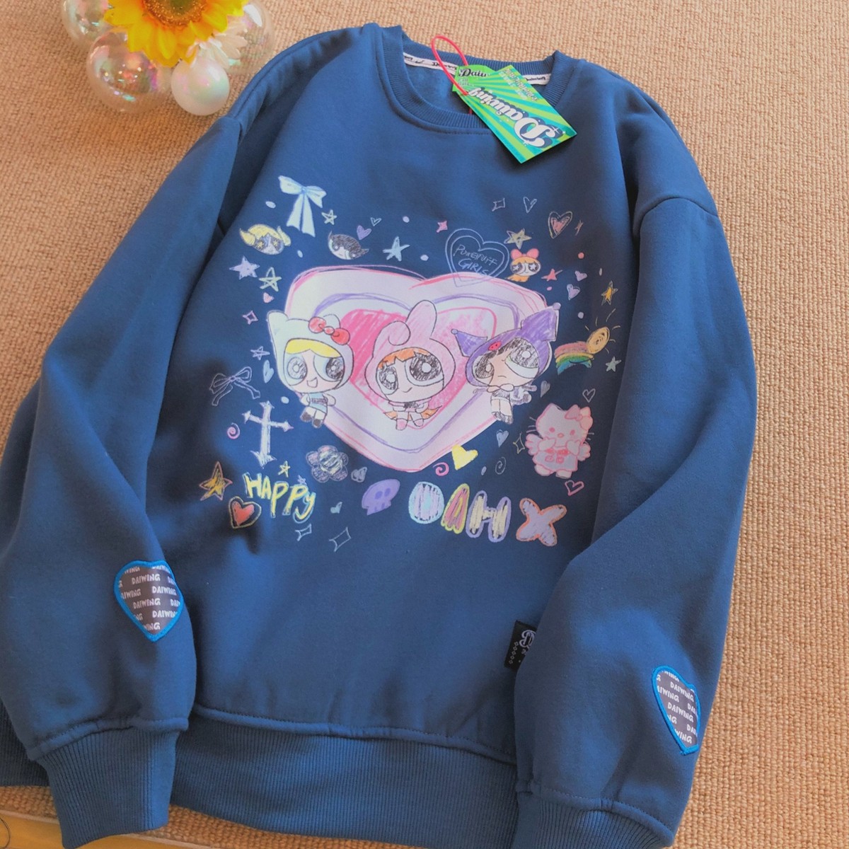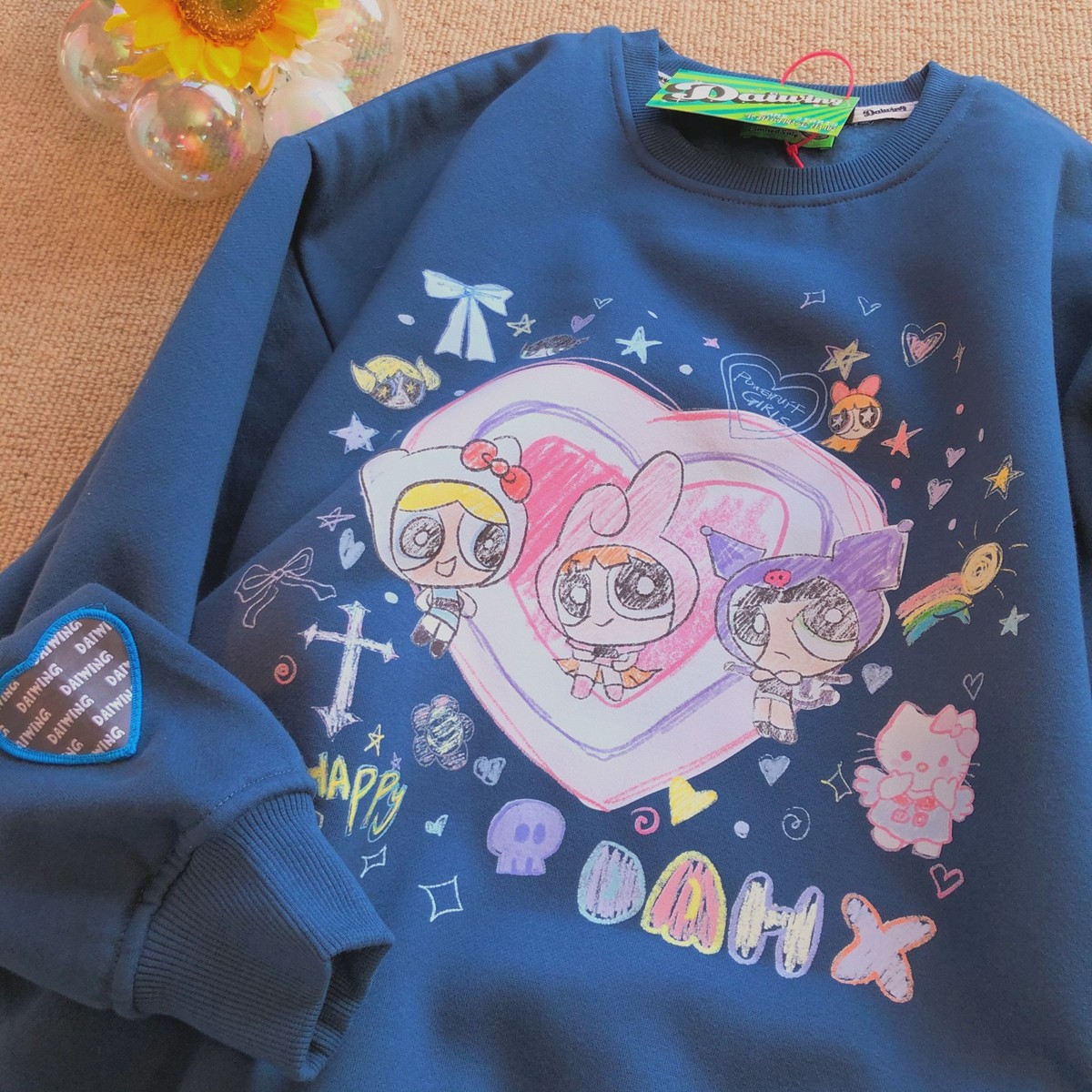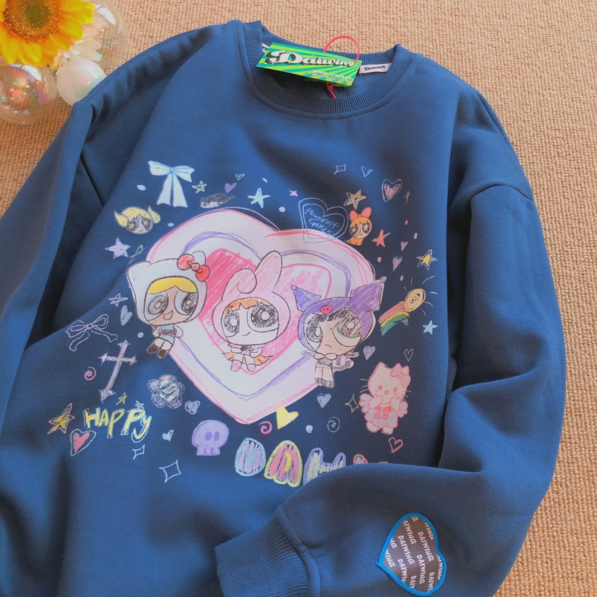 📚 Daiwing 今日多云转甜 秋冬卡通宅萌甜妹圆领卫衣情侣宽松上衣