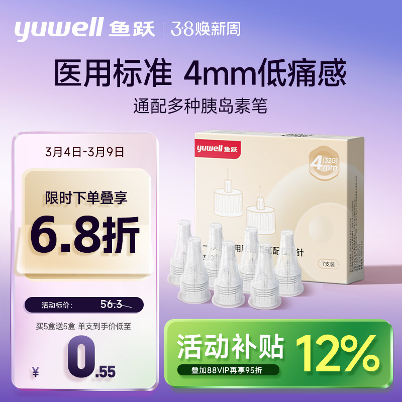 📚 鱼跃胰岛素针头注射笔针头一次性0.23*4mm糖尿病注射器通用家用