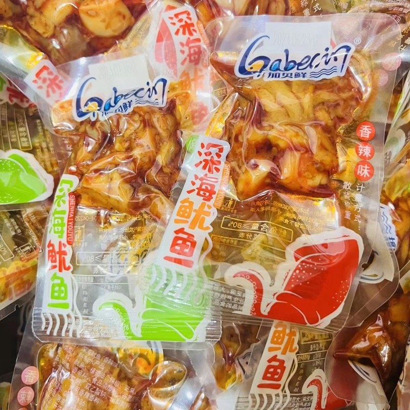 📚 加贝鲜深海鱿鱼条香辣麻辣味小袋装即食鱿鱼系列称重休闲小吃零食