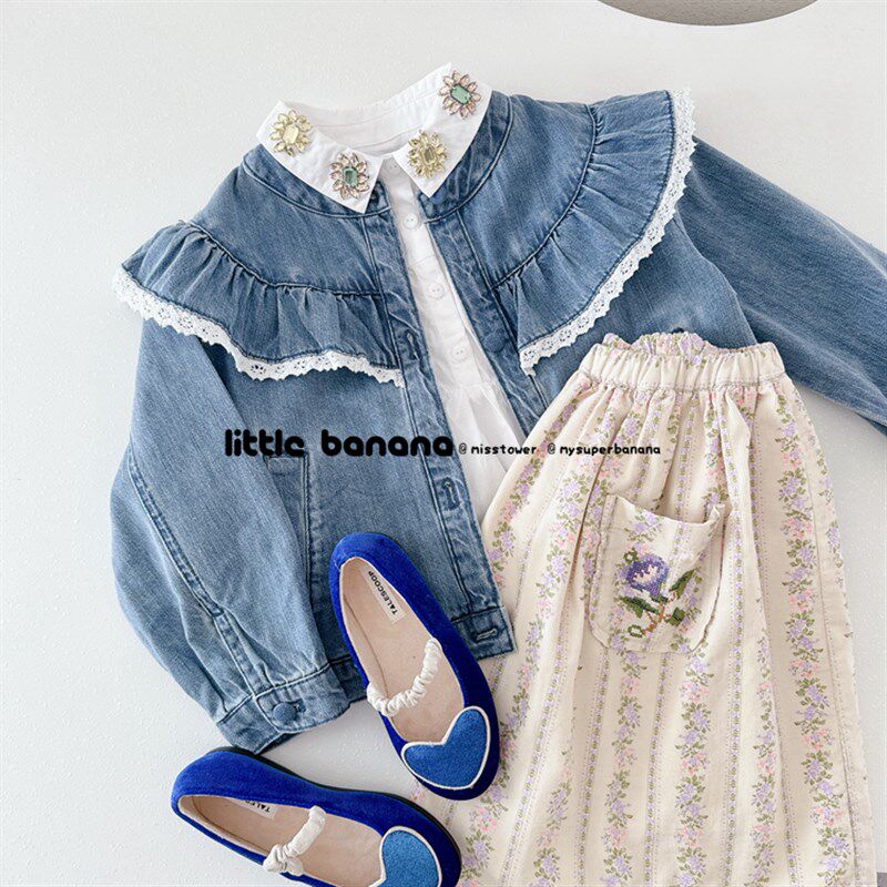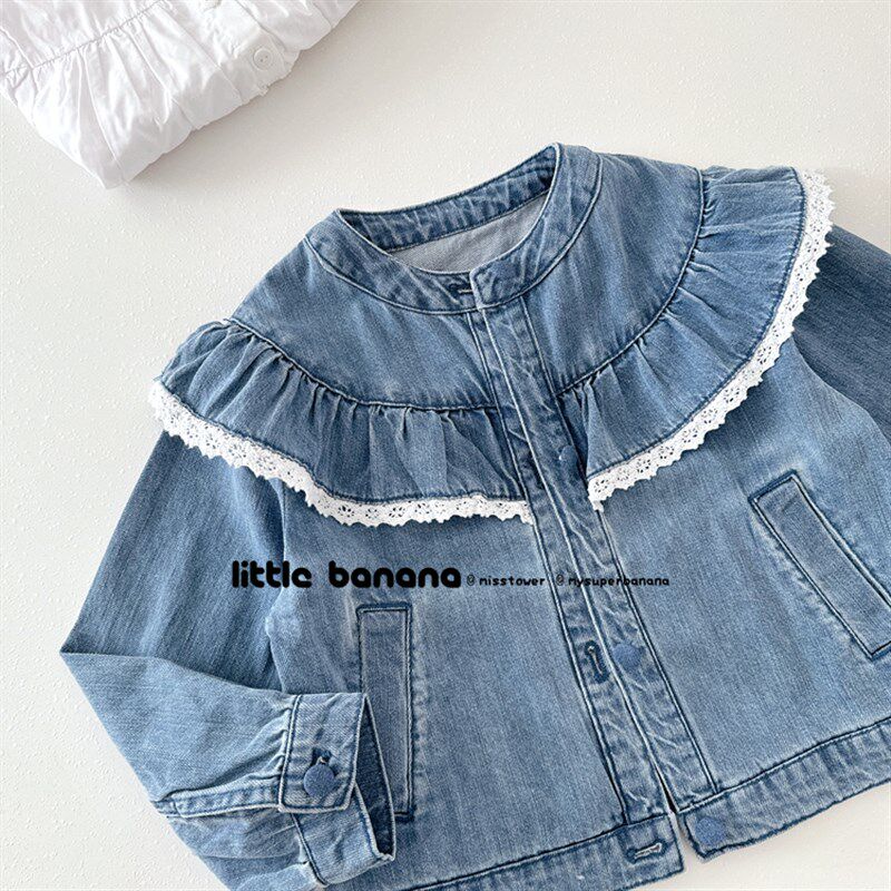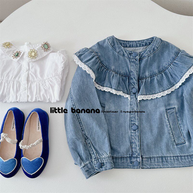 📚 纯尾 韩国童装女童儿童春秋新款花边长袖软牛仔公主夹克外套开衫
