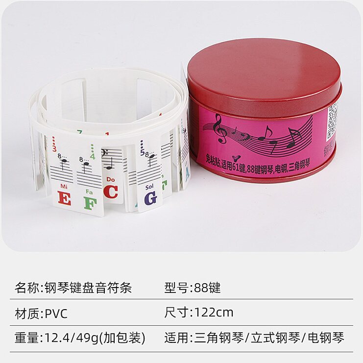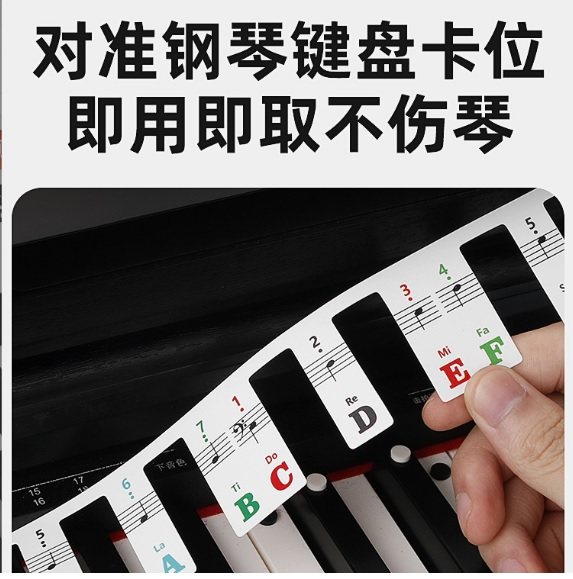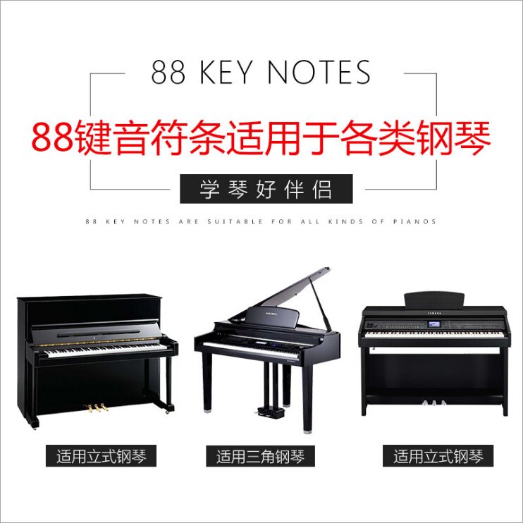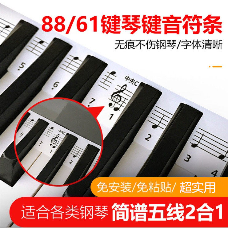 📚 彩色钢琴键盘音符卡免粘贴电钢电子琴88/61键五线谱简谱音符条卡