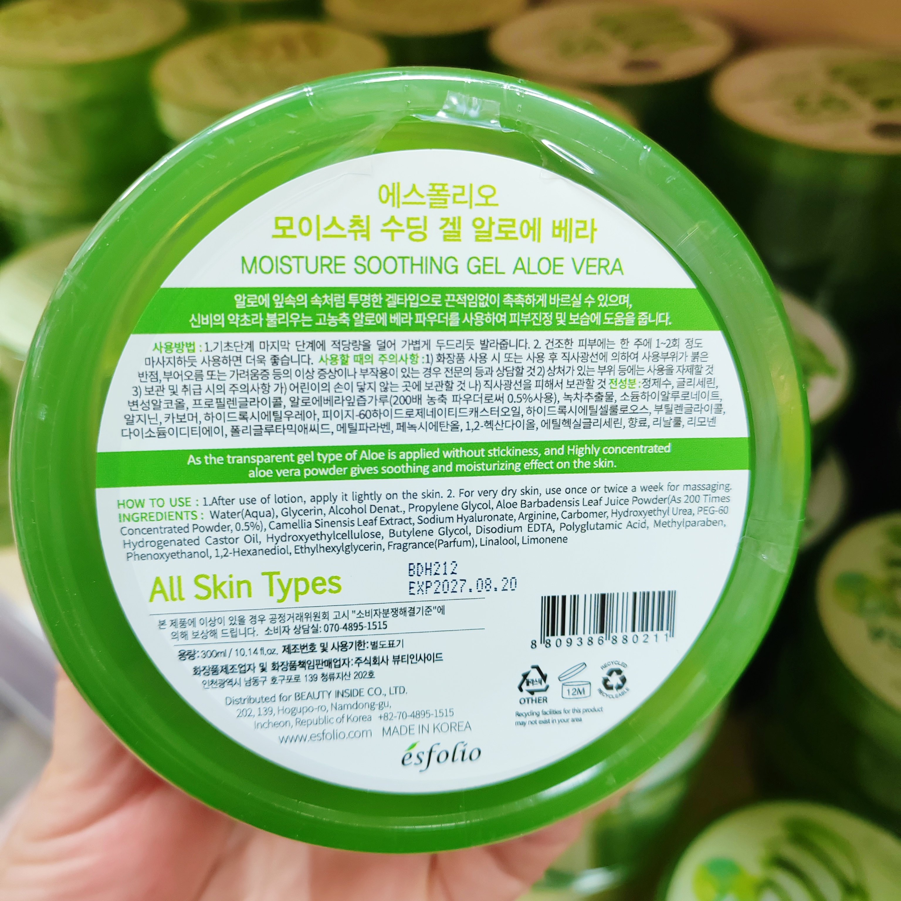 📚 包邮esfolio韩国ALOE VERA 100%芦荟胶抗痘淡印补水睡眠免洗面膜