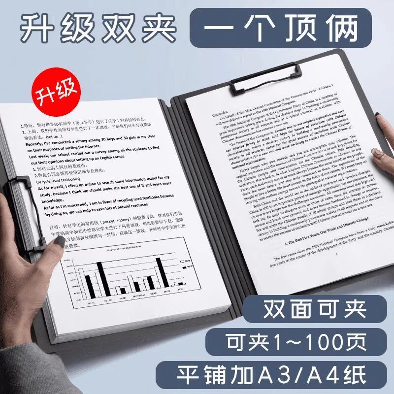 📚 a4纸文件夹板夹资料夹活页收纳双夹多功能纸夹板夹写字板书文具本夹子竖办公用品小学生专用试卷整理神器