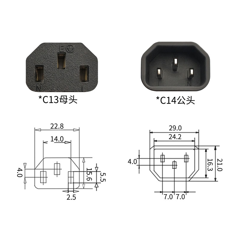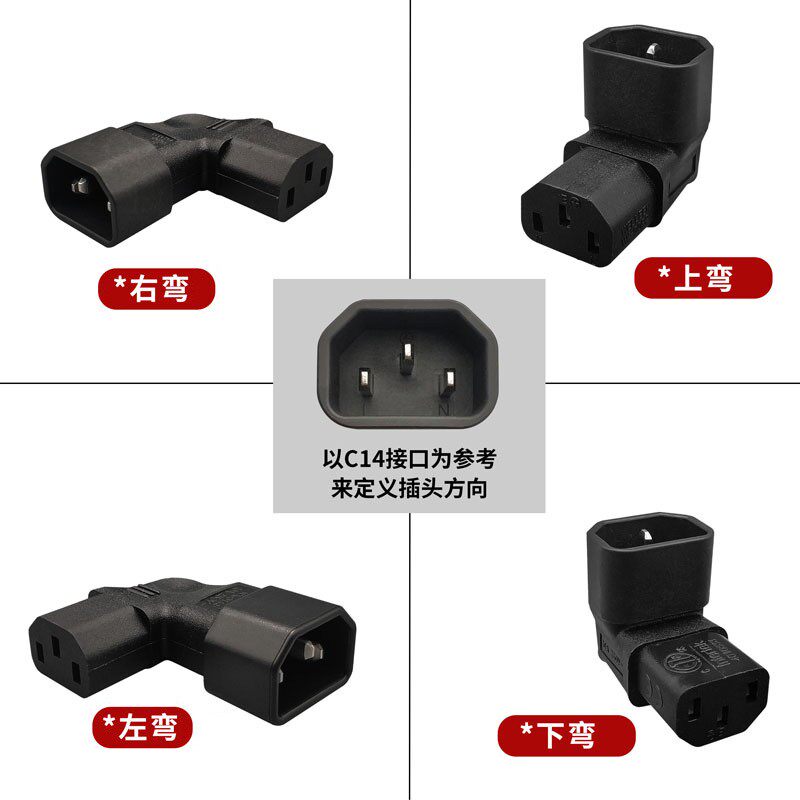 📚 品字形90度转换头 IEC320 C13转C14上下左右头电源线方向转接头