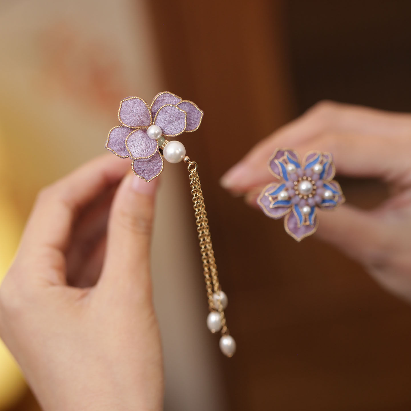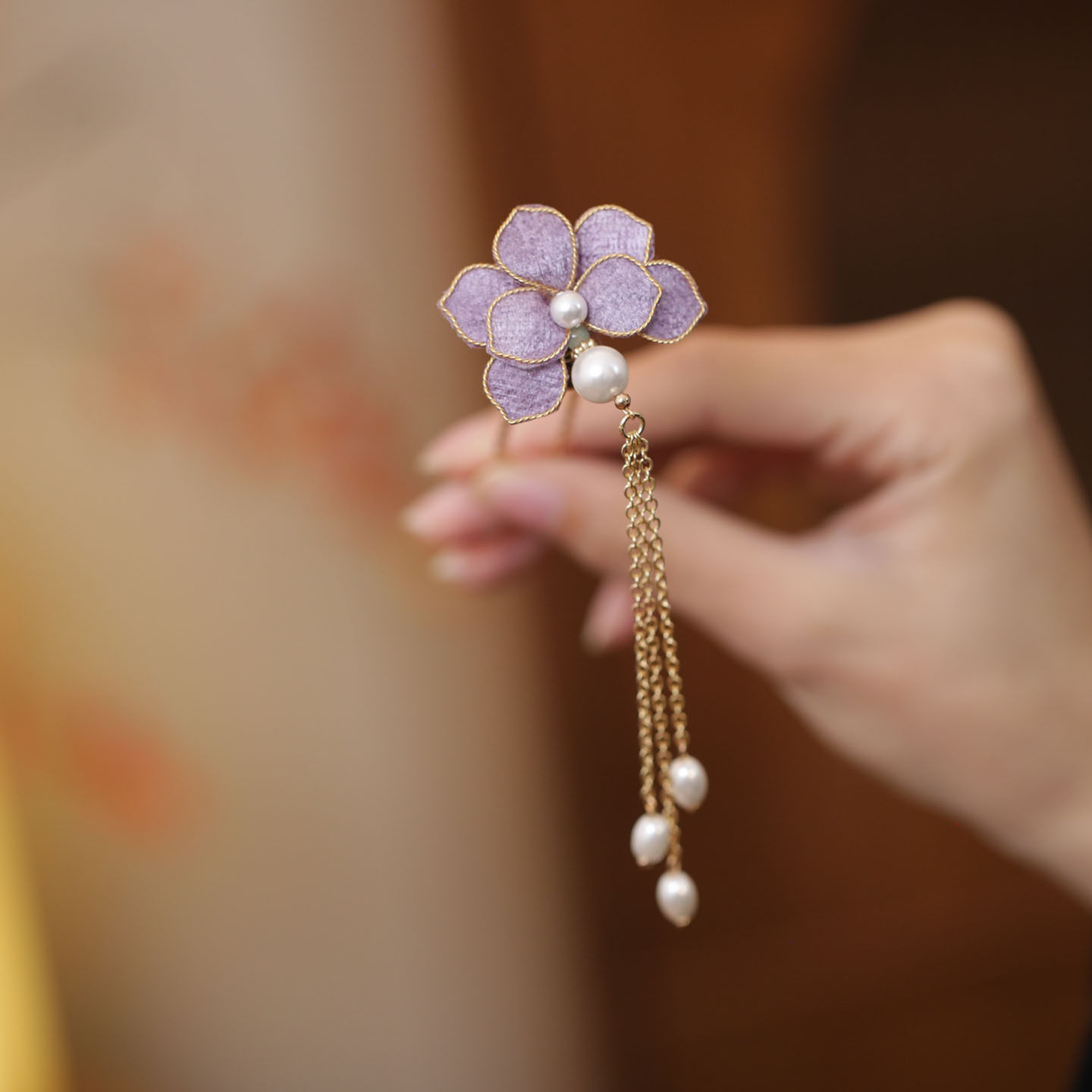 📚 掐丝小花钗紫色发簪古风女童发叉头钗簪子旗袍发钗u型汉服头饰品