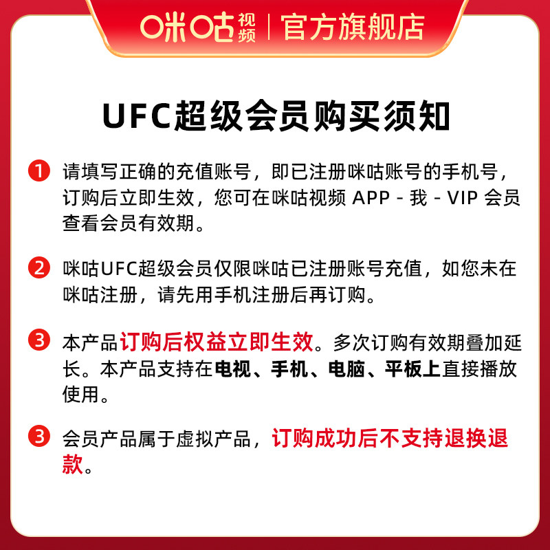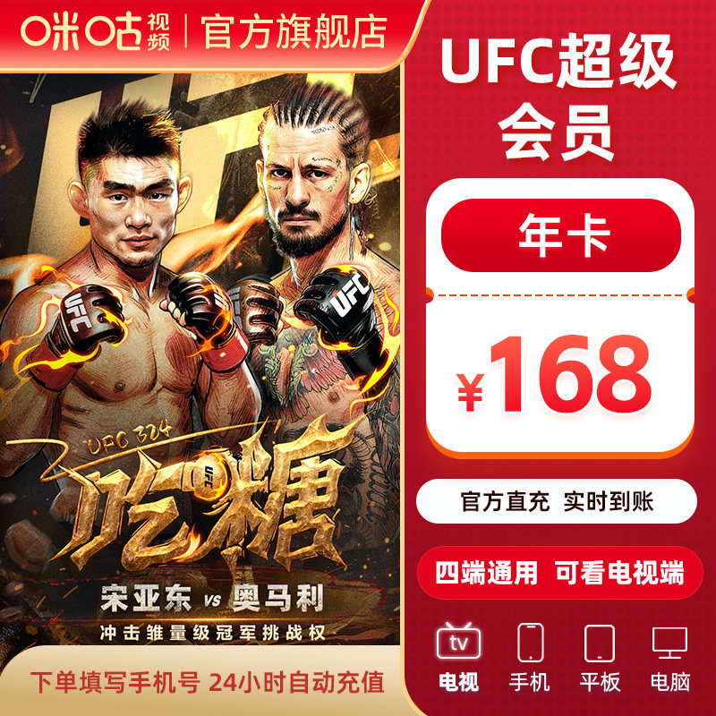 📚 【四屏看UFC】咪咕视频UFC超级会员年卡 支持咪视界畅看UFC宋亚东