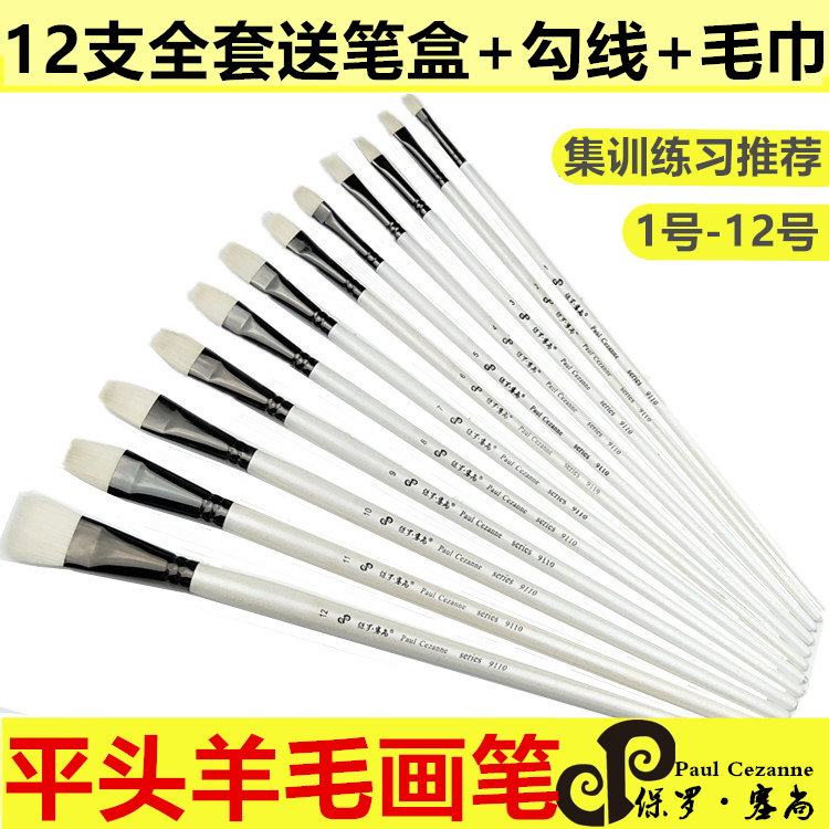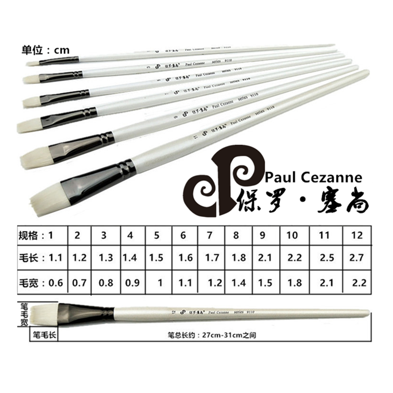 📚 保罗塞尚9110纯羊毛羊毫平头水粉笔单支水彩笔丙烯油画笔套装排笔