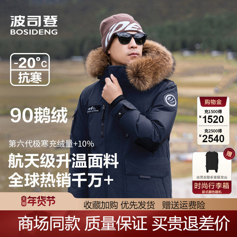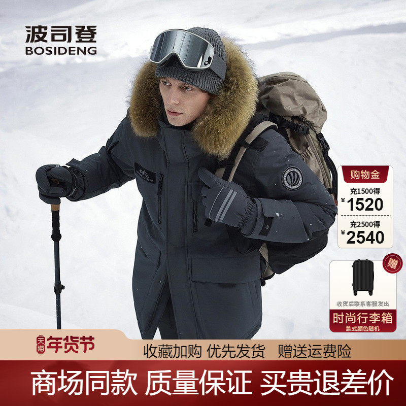 📚 波司登2025新款男中长款户外工装极寒加厚鹅绒羽绒服黑色保暖外套