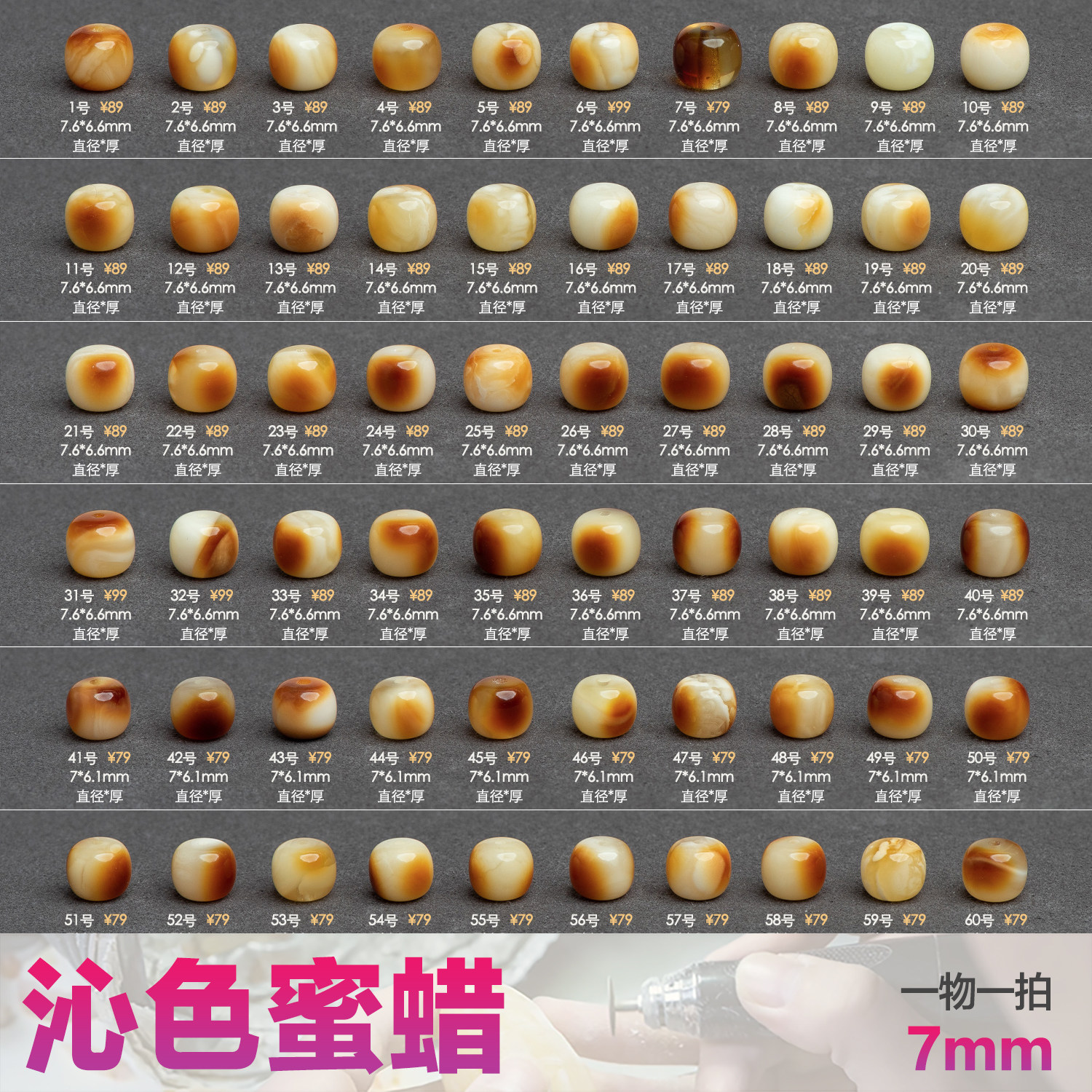 📚 艺如继往7mm天然沁色花蜡老型文玩蜜蜡散珠焦糖色瓷白花顶珠腰珠