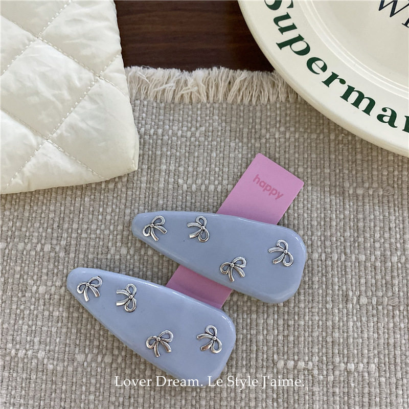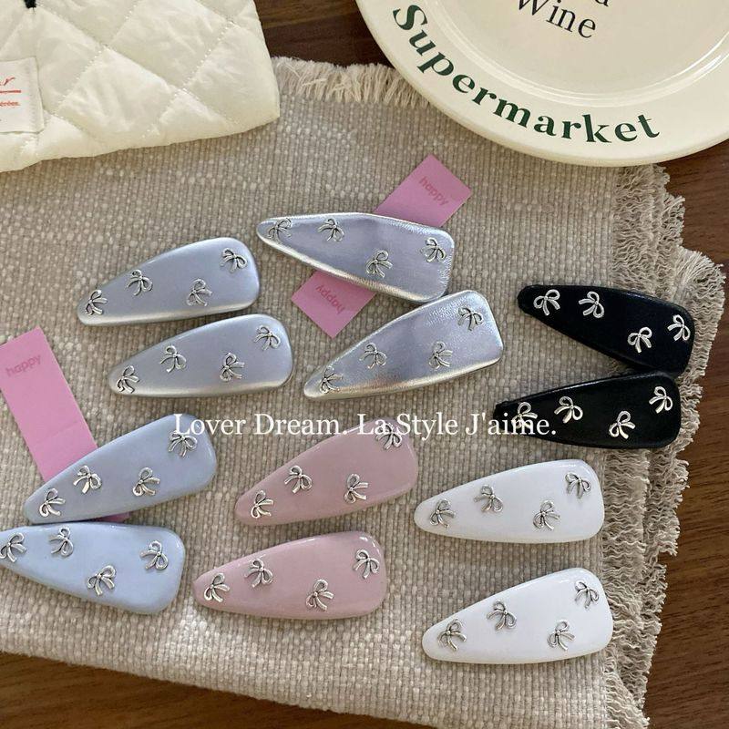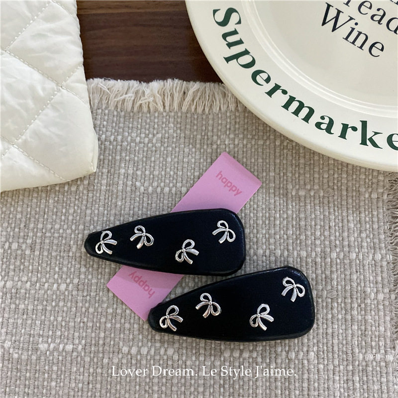📚 韩国新款甜美银色蝴蝶结仿皮BB夹发夹碎发刘海夹侧边夹发卡发饰