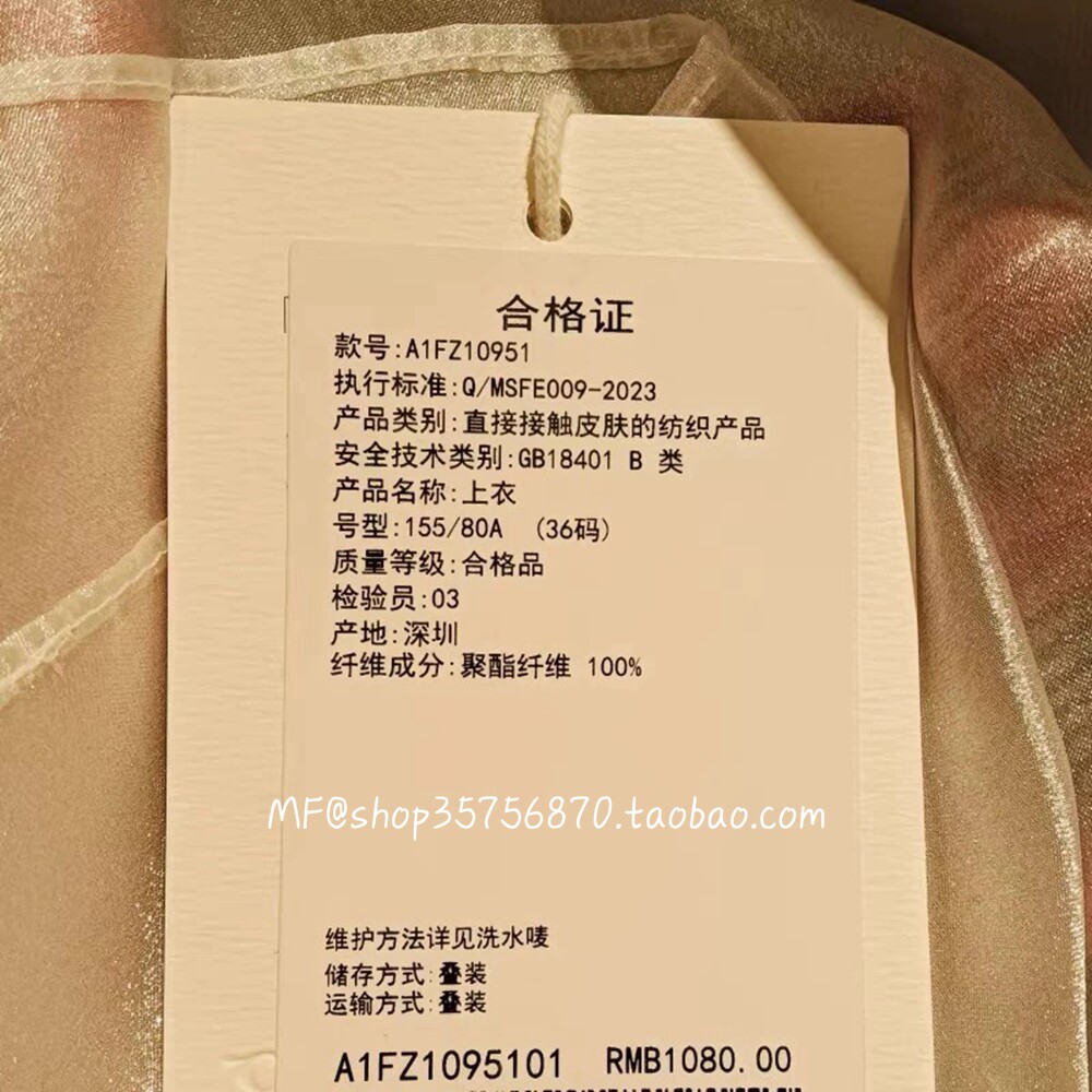 📚 MF玛菲2025春正品 薄款聚酯纤维透透纱上衣A1FZ10951同A1FZ20561