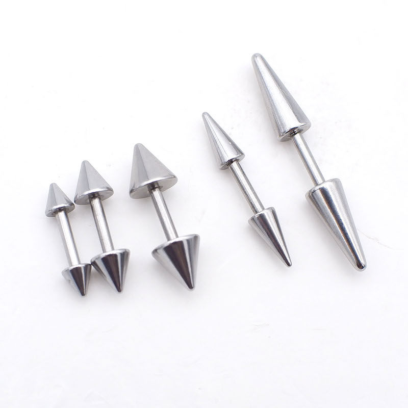📚 F136钛合金/钛钢外螺纹双头尖锥耳钉耳骨钉恶魔钉男女尖头穿刺钉