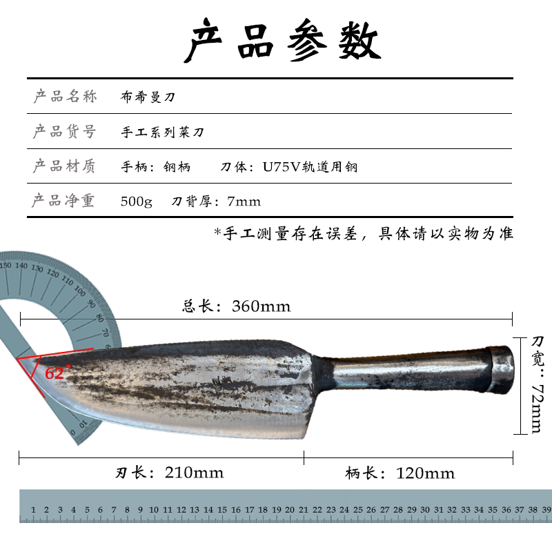 📚 三坚手工锻打布希曼特殊用途刀户外工具刀耐用碳钢家用开刃菜刀