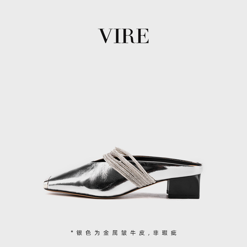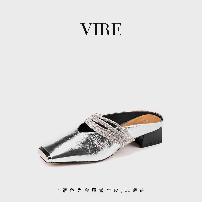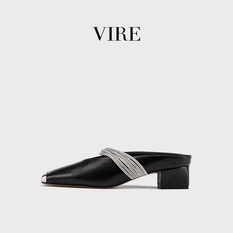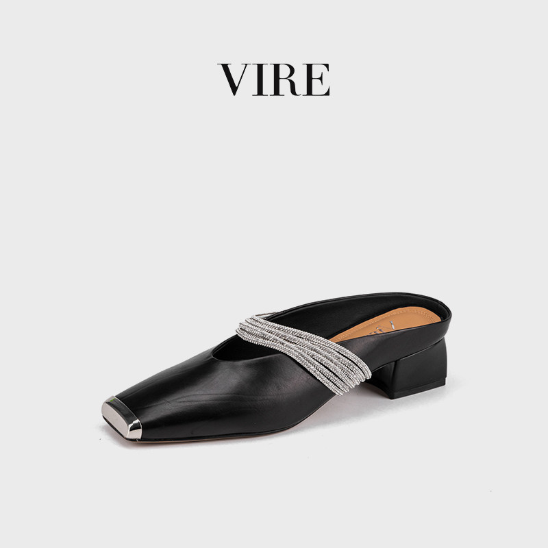 📚 VIRE/991122新款法式时尚气质舒适方头夏季凉拖低跟百搭包头半拖B