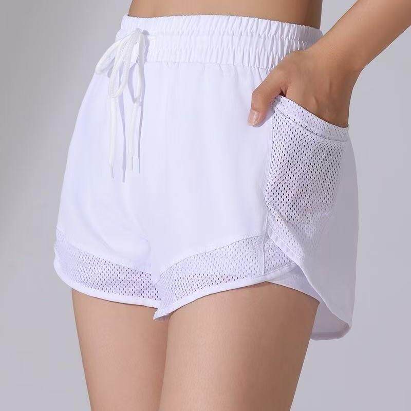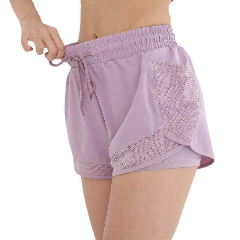 📚 欧码加大防走光运动健身五分裤女宽松网纱拼接假两件速干裤瑜伽裤
