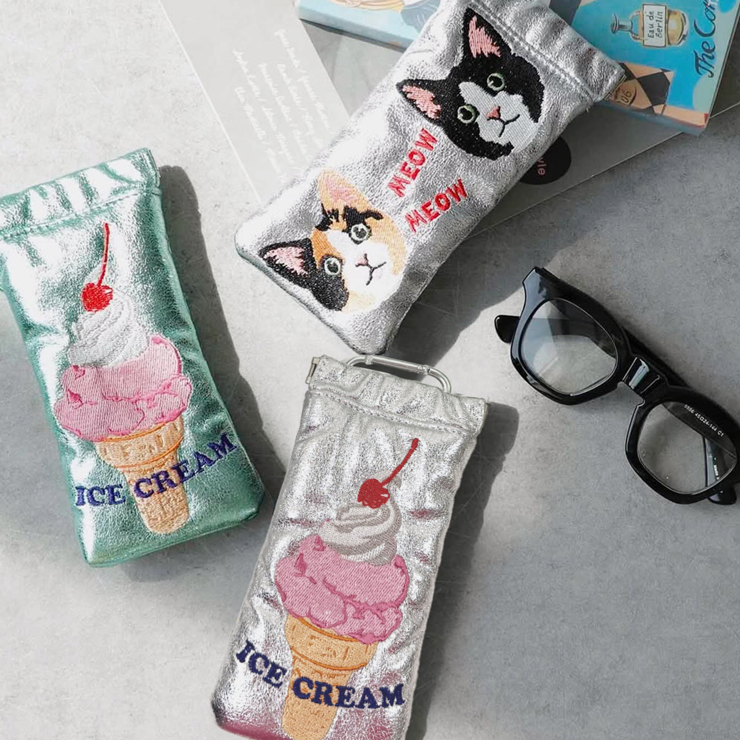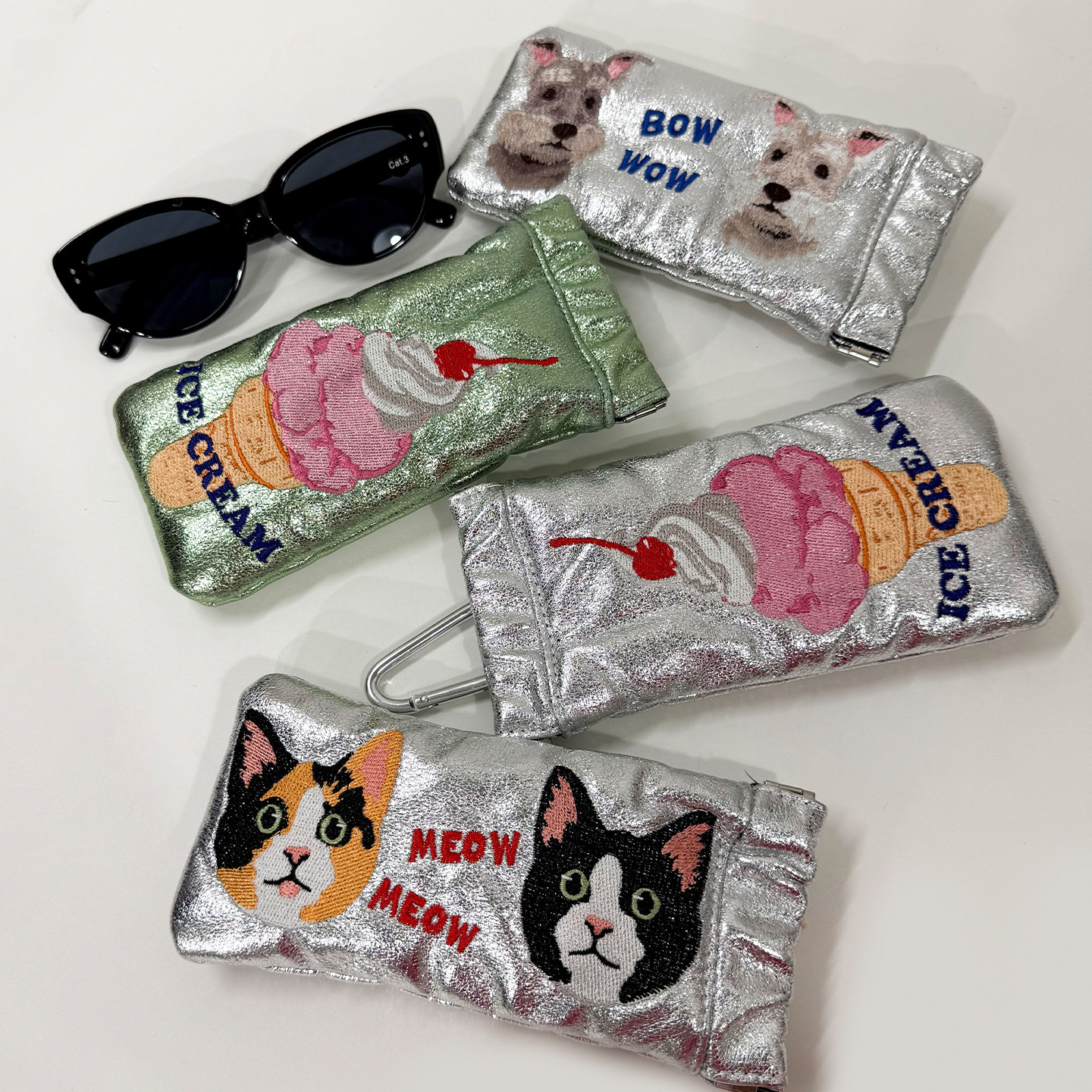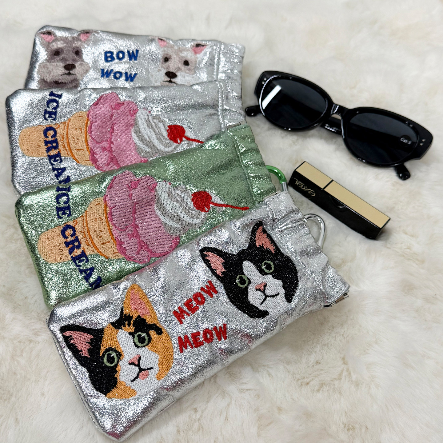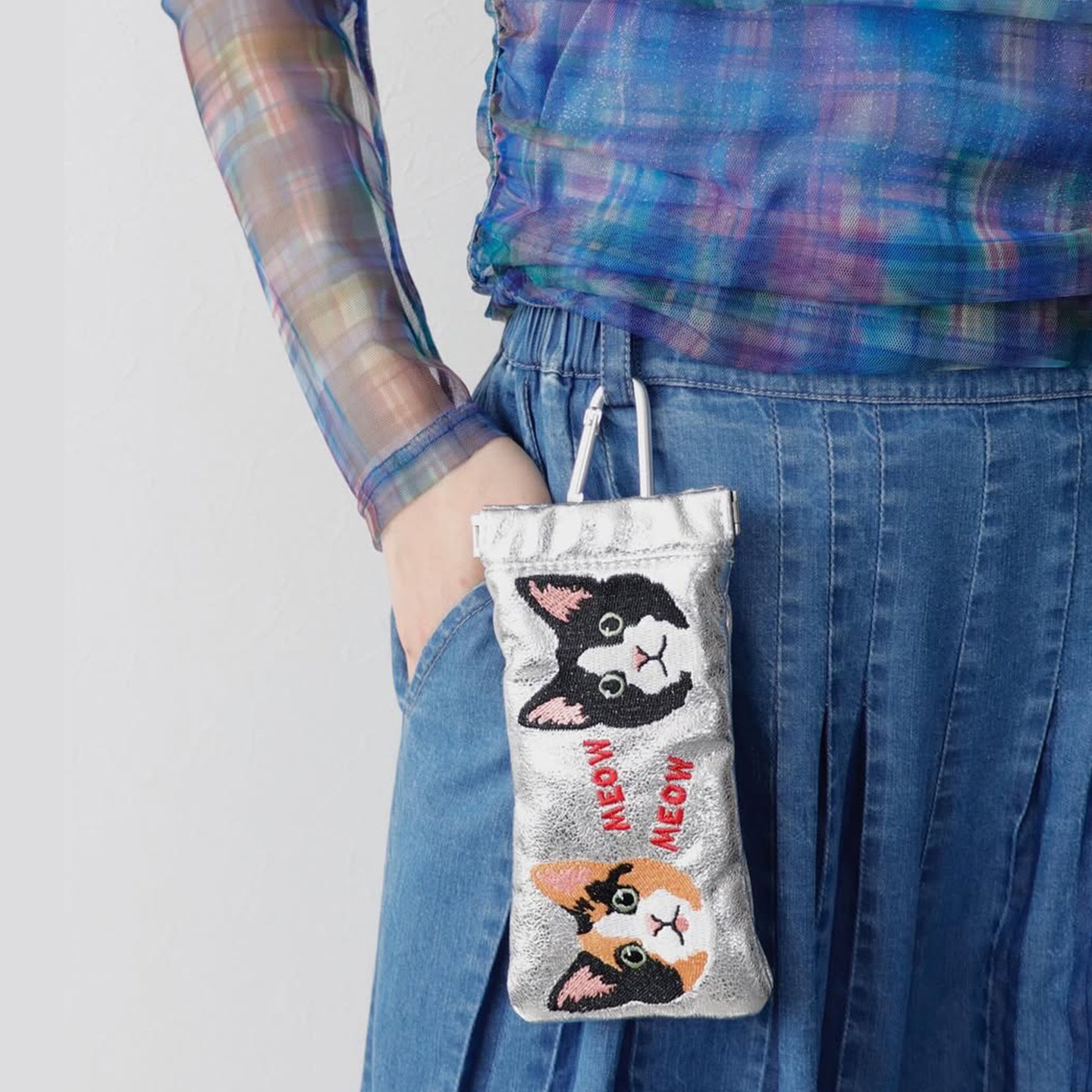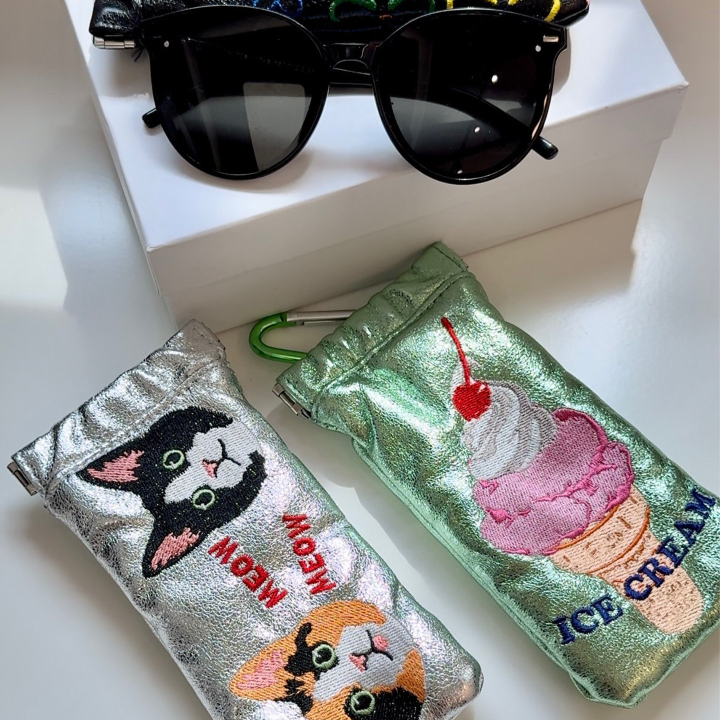 📚 casselini猫咪刺绣便携式首饰袋眼镜墨镜袋收纳袋可爱高颜值礼物