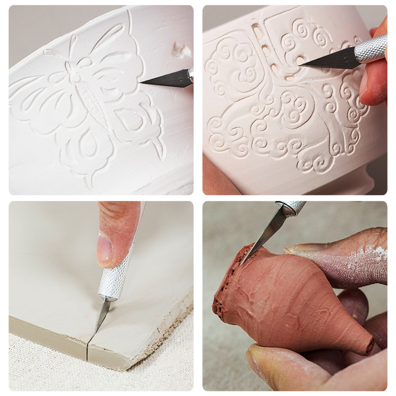 📚 水流星陶艺镂空挖泥不锈钢切泥刀多头尖头锋利可替换刀头雕刻刀