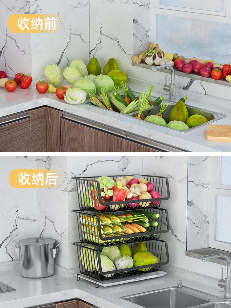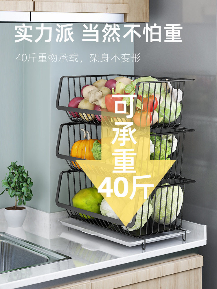 📚 2026厨房台面蔬菜置物架桌面上储菜篮子灶台菜架子多层放水果蔬收