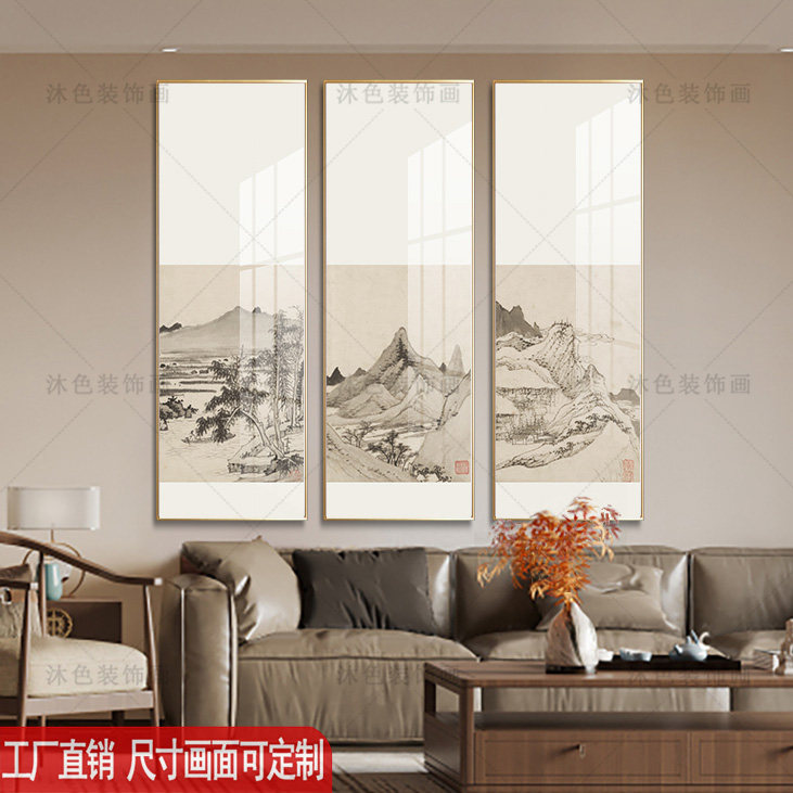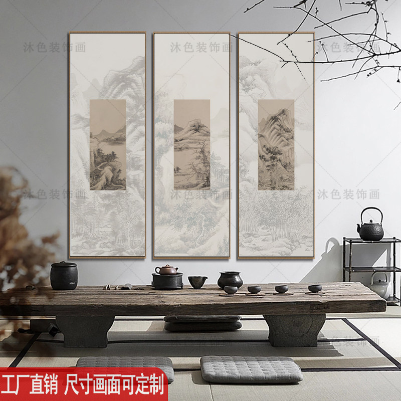 📚 新中式茶楼茶室挂画民宿客厅背景墙壁画饭店包间三联幅装饰画定制