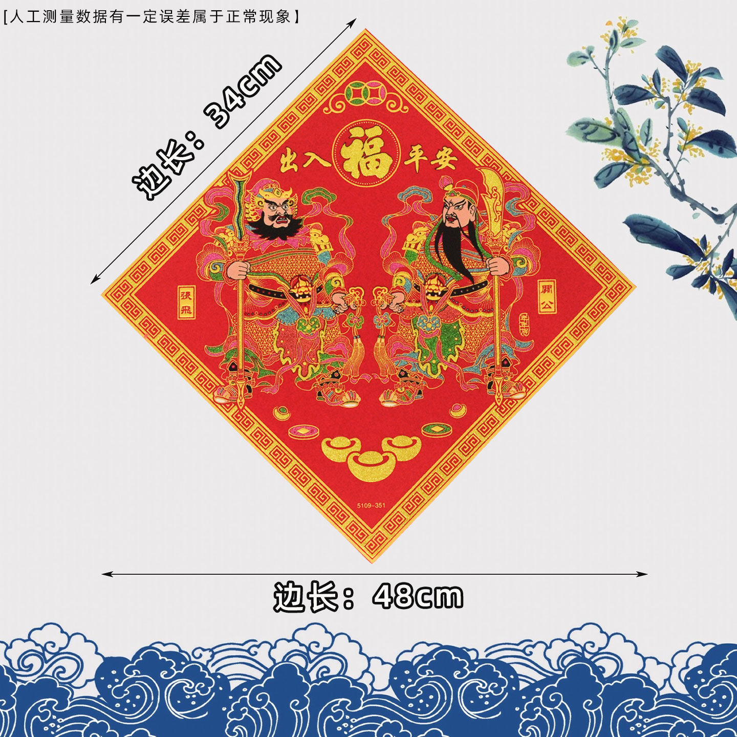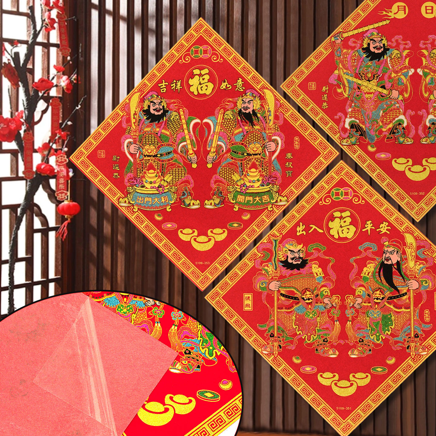 📚 传统门神斗方福字贴新年装饰用品大门房门春节秦叔宝关公张飞门贴