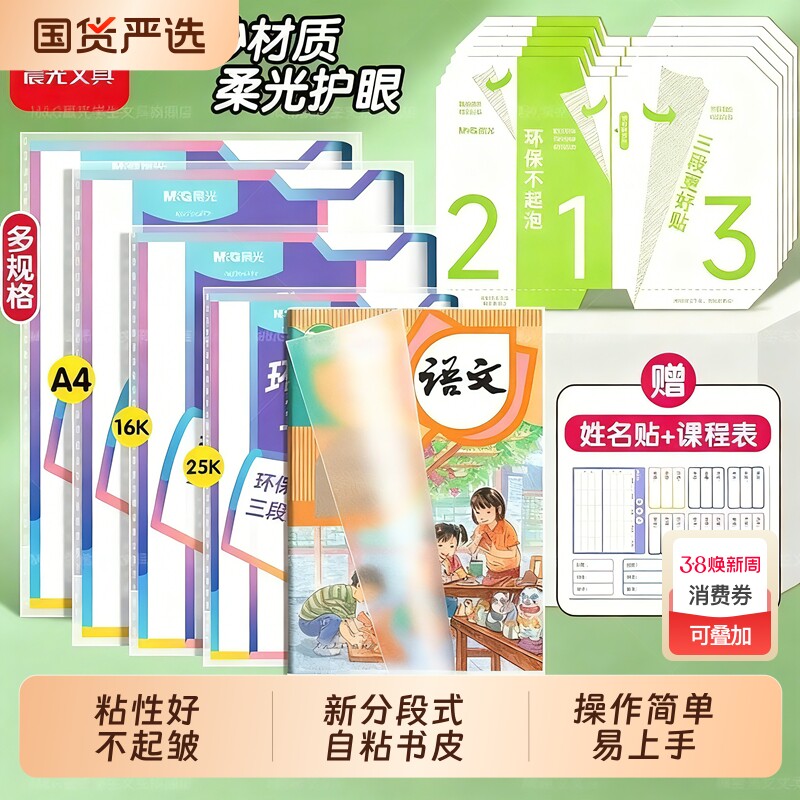 📚 晨光分段式包书皮自粘透明磨砂加厚书套包书膜书皮纸16K小学生一年级A4一体化书壳全套塑料防水课本保护套