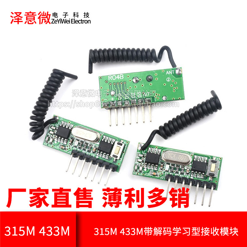 📚 433M无线接收模块带解码学习型315mHz四路家居遥控器无线接收模块