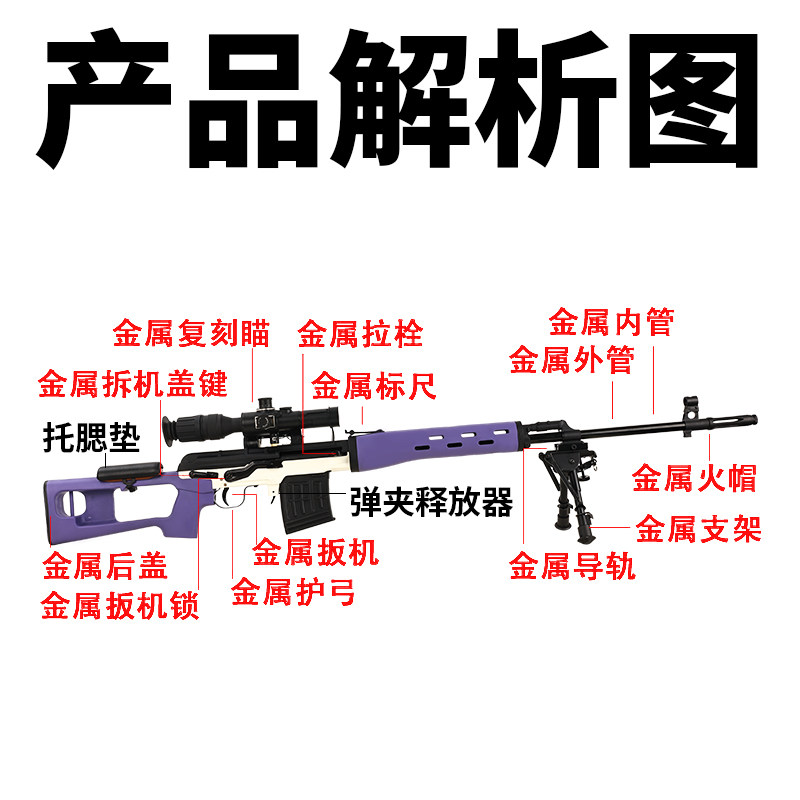 📚 捷鹰SVD狙击抛壳软弹金属玩具m200男孩成人M24大号AWM模型85狙枪
