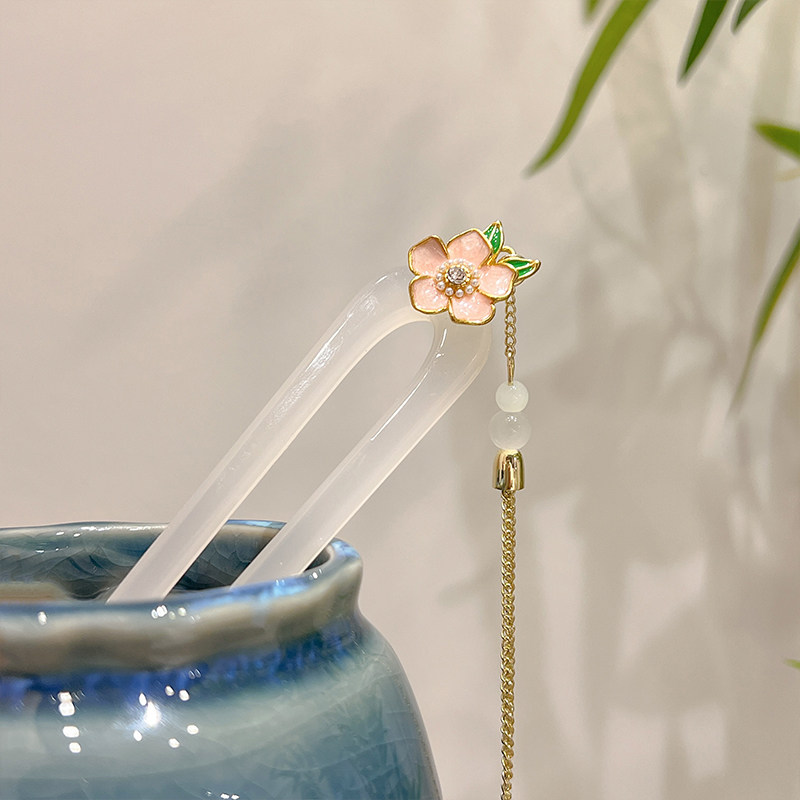 📚 新中式花朵u型发簪中国风旗袍步摇流苏盘发簪子古风发饰中秋头饰