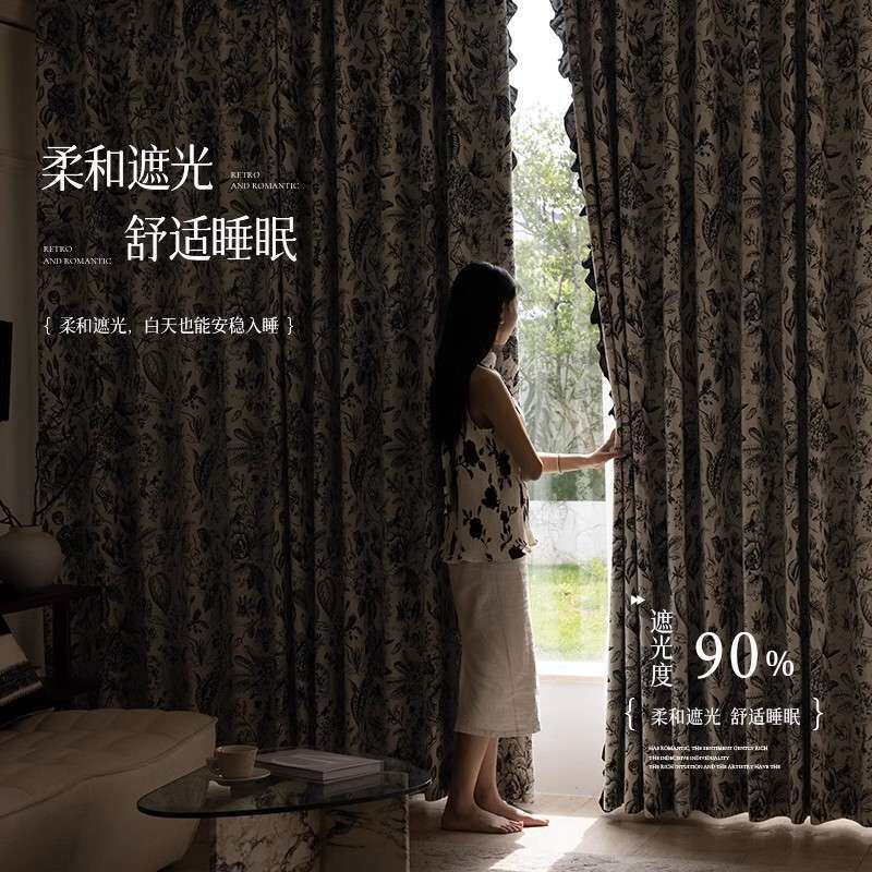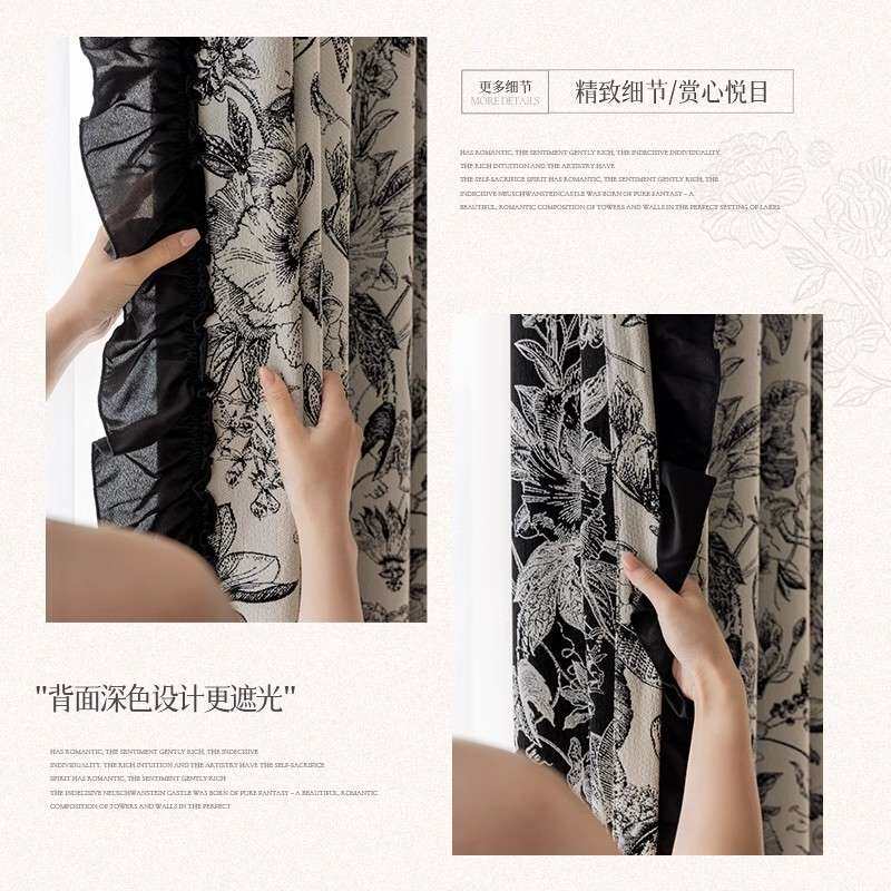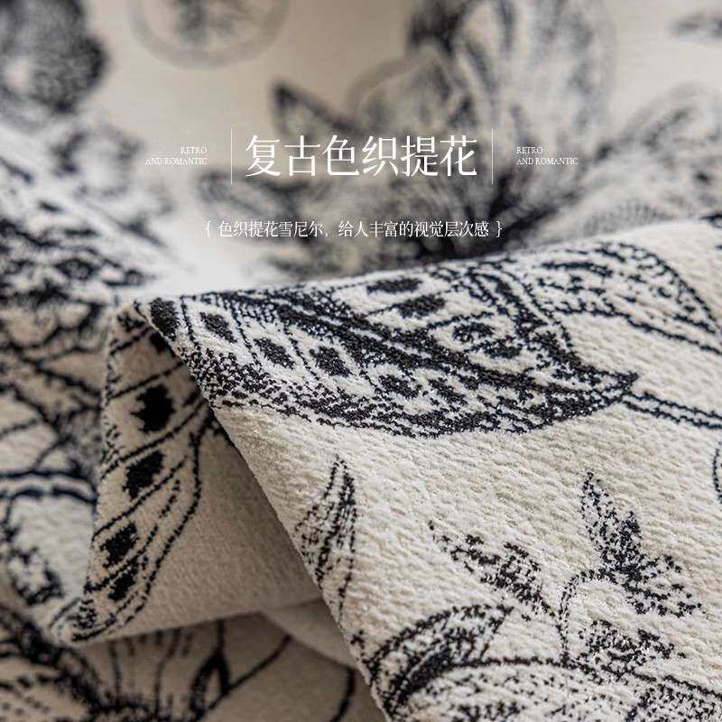 📚 绮梦花园法式复古黑白雪尼尔提花窗帘许村花布高品质布料 厂家