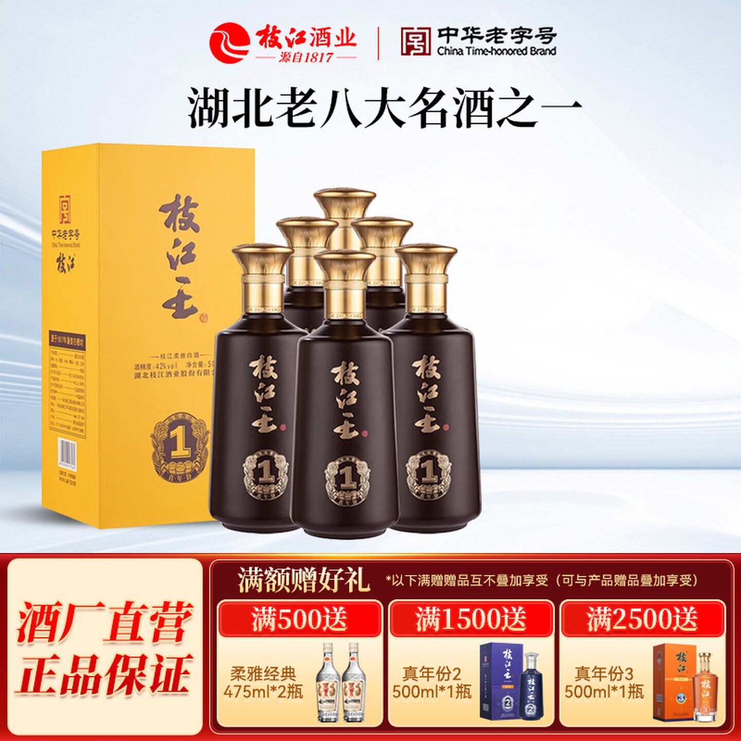 📚 枝江大曲官方旗舰店 枝江王真年份1浓香纯粮食白酒52度6瓶500ml