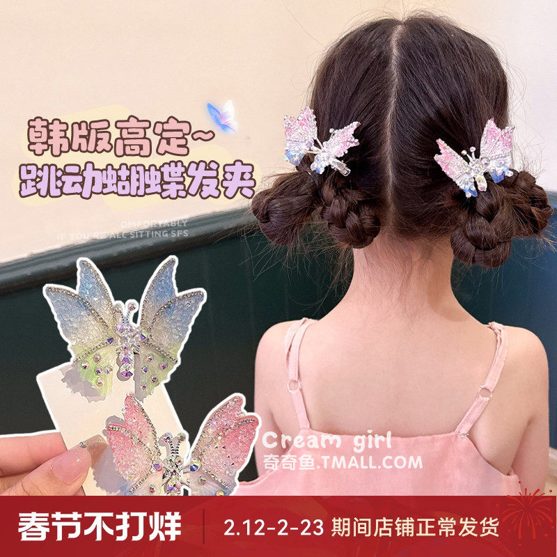 📚 女童会动的蝴蝶水钻发夹儿童刘海碎发夹子女宝宝前额超仙公主头饰