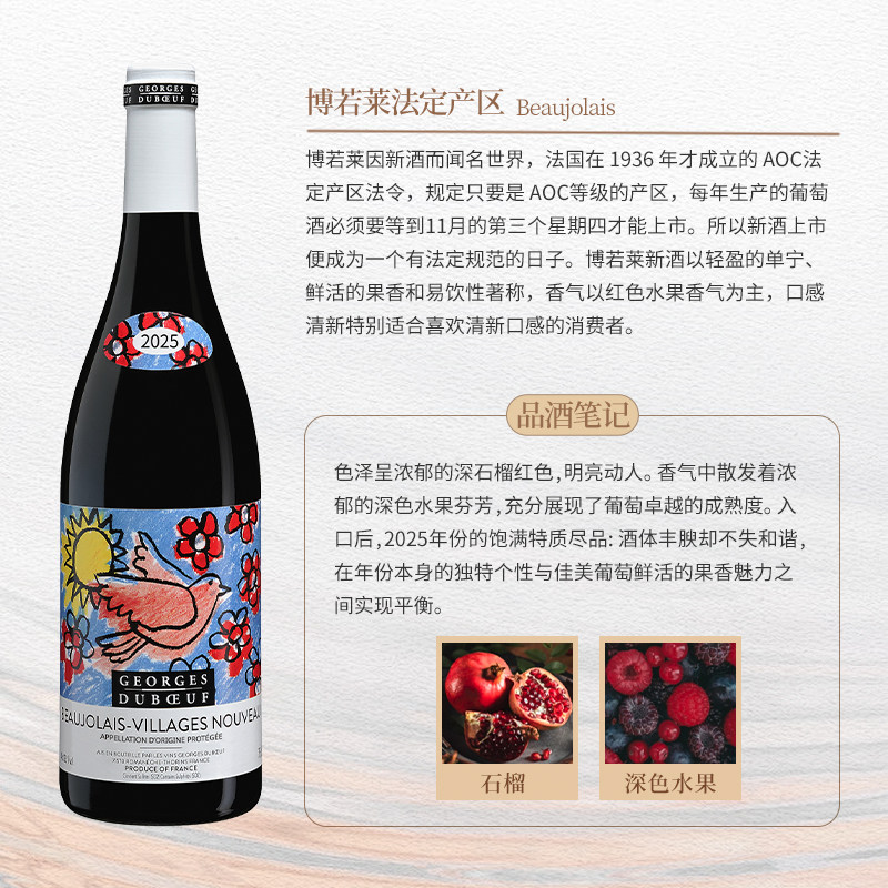 📚 【自营】法国乔治杜博夫博若莱新酒2025鸽子标干红葡萄酒750ML