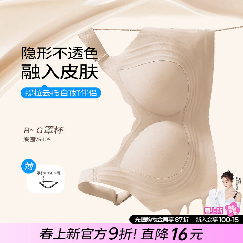 📚 糖粒无痕粉底液隐形内衣不透大胸显小大码胖mm全罩杯收副乳文胸罩