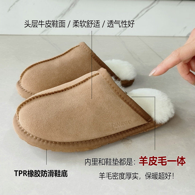 📚 DANANUO春季新款2025羊毛拖鞋 男女皮毛一体空调房防寒老年保暖