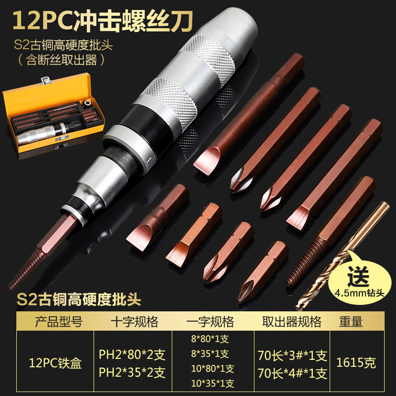📚 金赛骑生锈死螺丝冲击螺丝刀断头螺丝取出器撞批十字改锥穿心起子