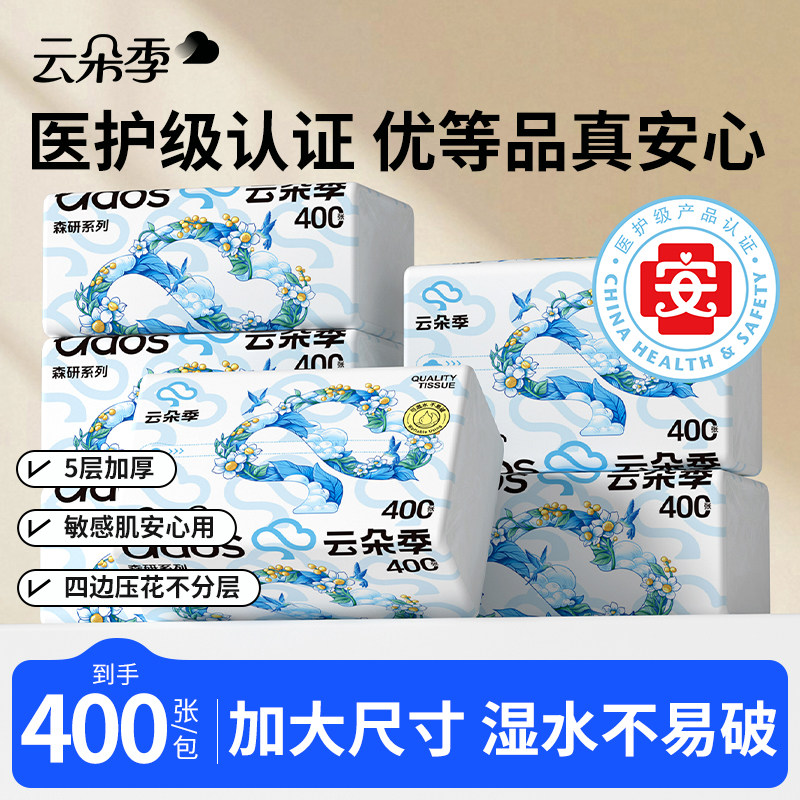 📚 云朵季医护级抽纸400张家用5层实惠装纸巾学生宿舍面巾纸厕所纸巾