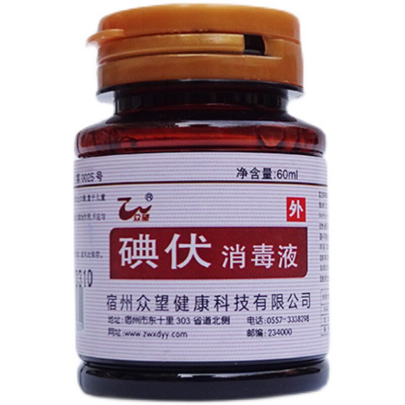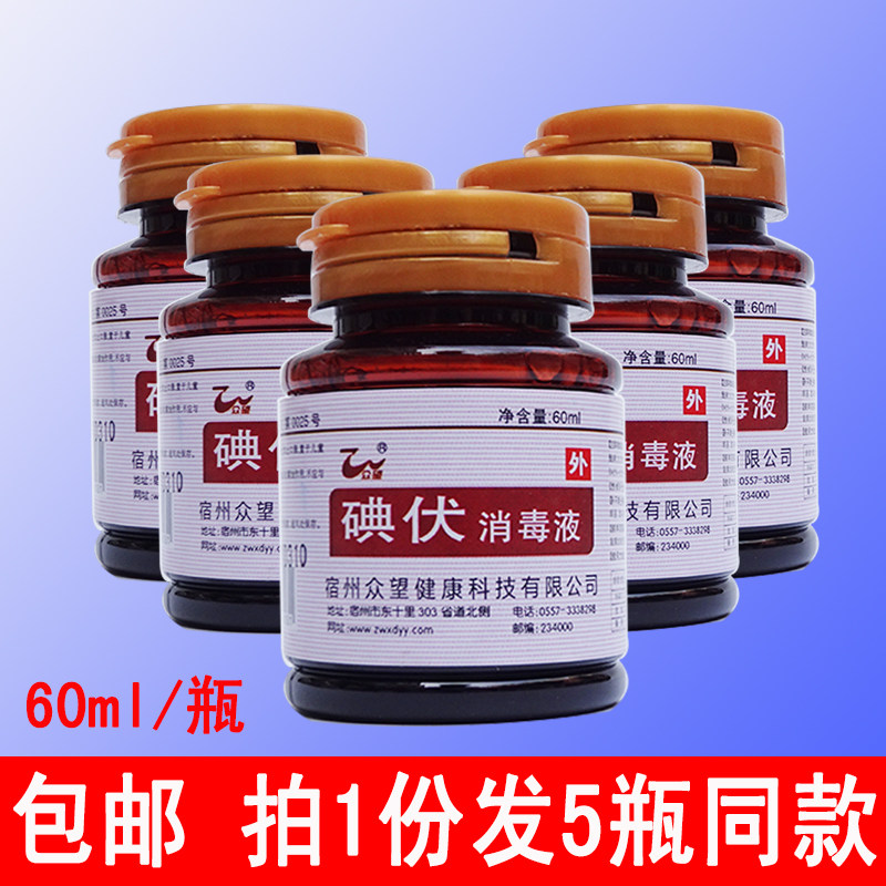 📚 众望碘伏消毒液60ml*5瓶家用皮肤伤口清洗婴儿擦肚脐消毒水碘酒