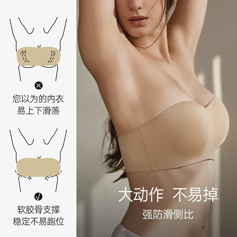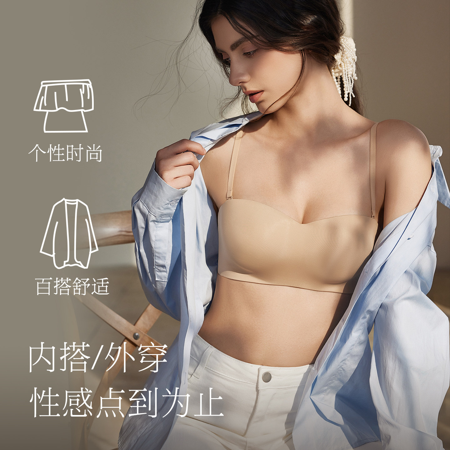 📚 梧桐本色内衣女小胸聚拢无痕防滑抹胸露肩性感光面文胸防外扩胸罩