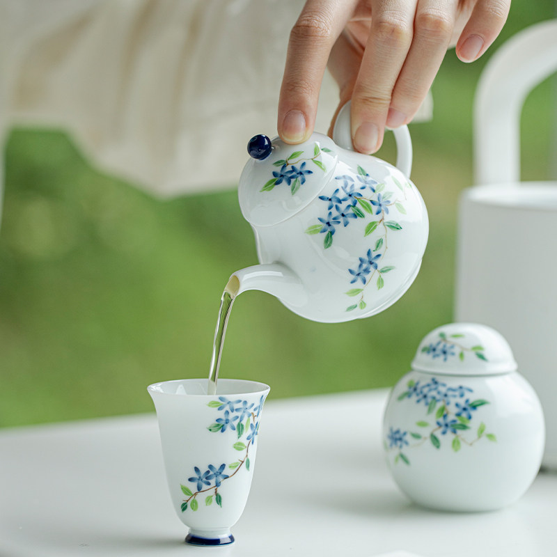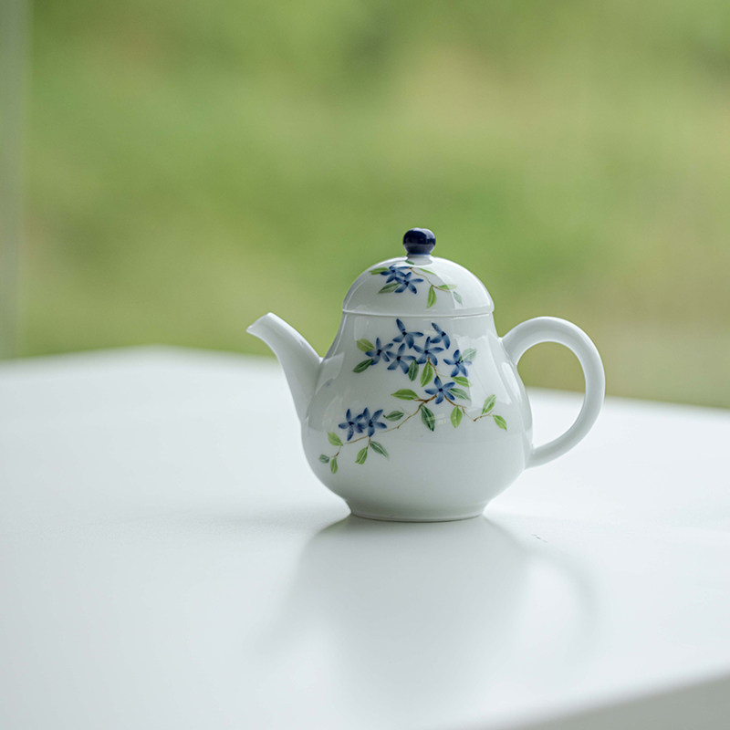 📚 繁野玉泥纯手绘小蓝花思亭壶家用陶瓷功夫茶具泡茶壶手执壶带过滤