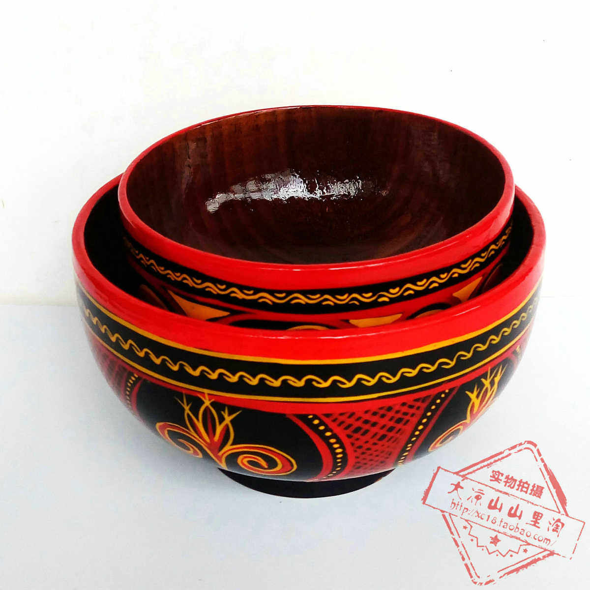 📚 凉山彝族漆器实木饭碗食堂用大碗吃饭的碗手工漆器木碗彝族人饭碗