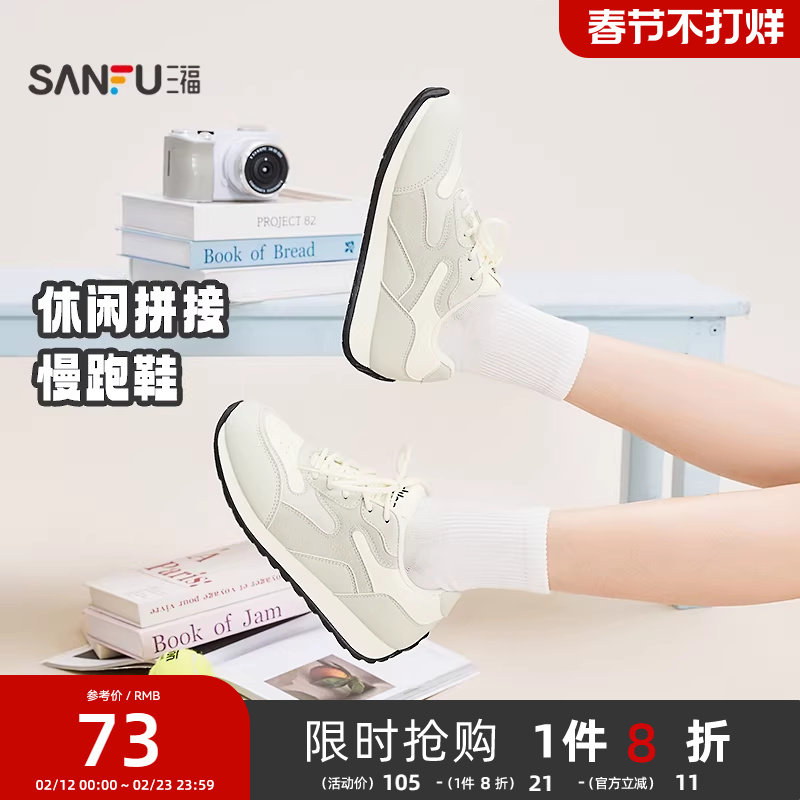 📚 三福女运动鞋春季时尚休闲材料拼接圆头慢跑鞋软底女鞋852175