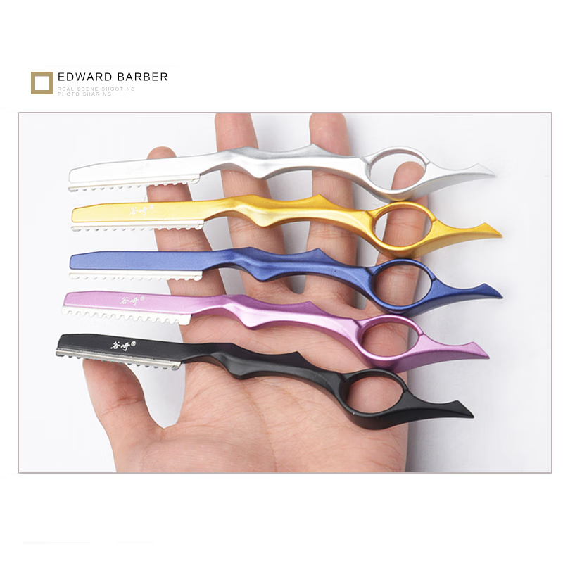 📚 削发器削发刀美发金属打薄碎发打薄刀架配锯齿刀手型设计剃刀刮头