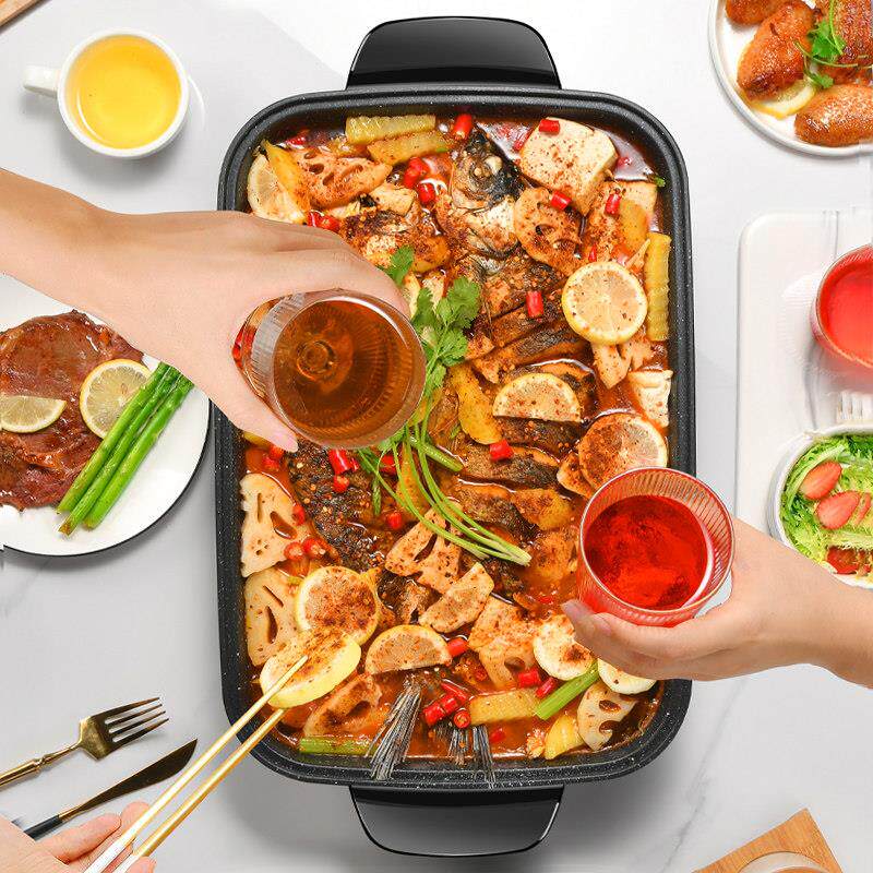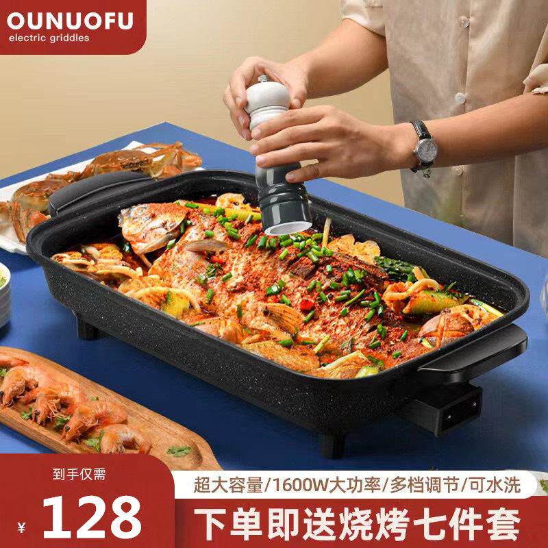 📚 欧诺福火锅烧烤一体锅商用纸包鱼专用锅家用烤涮蒸锅烤鱼炉电烤盘